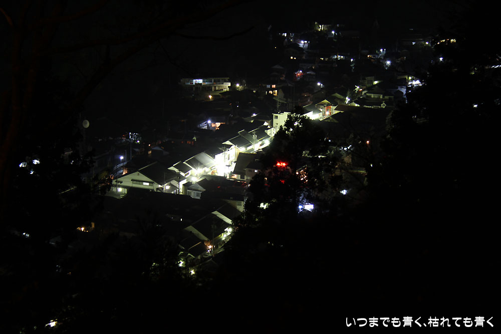 今回は、標高254mの飯盛山にも登ってきました。けっこうきつかったですが、山頂で撮ったライトアップを背後の家族写真はとてもきれいに撮れました。ただ、ストロボ+スローシャッターでの撮影だったため、ストロボ発光のあと少し動いてしまったところは、背後のライトアップと人物が重なり面白い雰囲気の写真となりました。残念ながらその家族写真は掲載しておりませんが、途中で撮影した奥さんと娘たちの写真は一枚掲載しました。