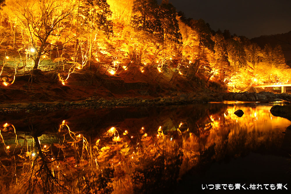 11月28日に、仕事帰りにひとりで香嵐渓に行った時の写真を家族が見て「ぜひ行きたい!」というので、今日、仕事を早く切り上げて再び香嵐渓の紅葉ライトアップに行ってきました。