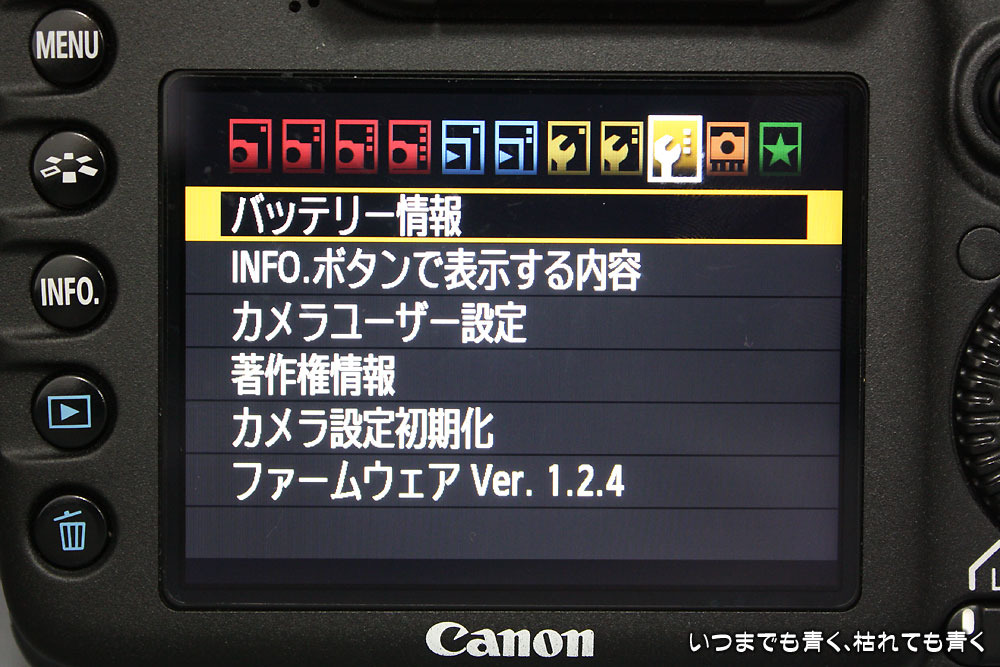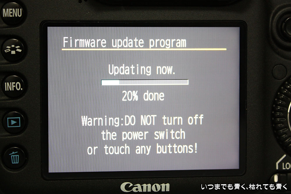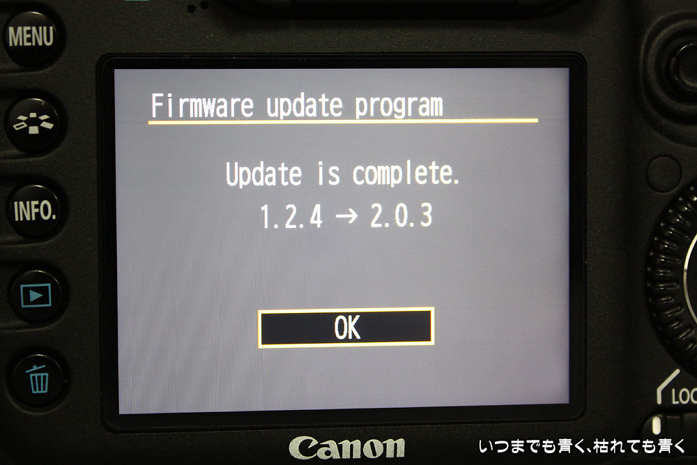 私の愛機、CANON EOS 7Dのファームウェアが昨年の8月にVer2.0.0にバージョンアップされました。しかし、いろいろと不具合も出ているような情報もありましたので、しばらくは、購入時のVer1.2.4のまま使っていました。不具合もVer2.0.3になりようやく安定してきたようですので、今日、Ver2.0.3にバージョンアップしました。