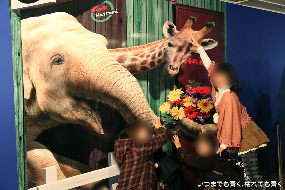 買い物と食事をして15時半に催事場に行って入館。すごい人で、それぞれのトリックアートで写真を撮るためには長い行列に並ばないといけなくて、結局すべて体験するのに2時間15分もかかりました。さすがにかなり疲れましたが、とても面白くて家族には好評で充分楽しむことができました。人が多いイベントは、担当者の態度でその疲れも変わってきますが、今回のそれぞれのアートにいる担当者の方は、ゆっくりと写真を撮っていても急かすようなこともなく、頼まれれば気楽に写真を撮ってあげたりと、とても気持ちよい対応だったのも、楽しい気分を維持できた要因だったと思います。最後の「ピエロのはしご」の担当の女性は、「ここまでたどり着くのは大変だったでしょう。せっかくここまできただから、思うようにポーズを撮って楽しんでください」とまで言ってくれて、気分良く最後も締めくくることができました。