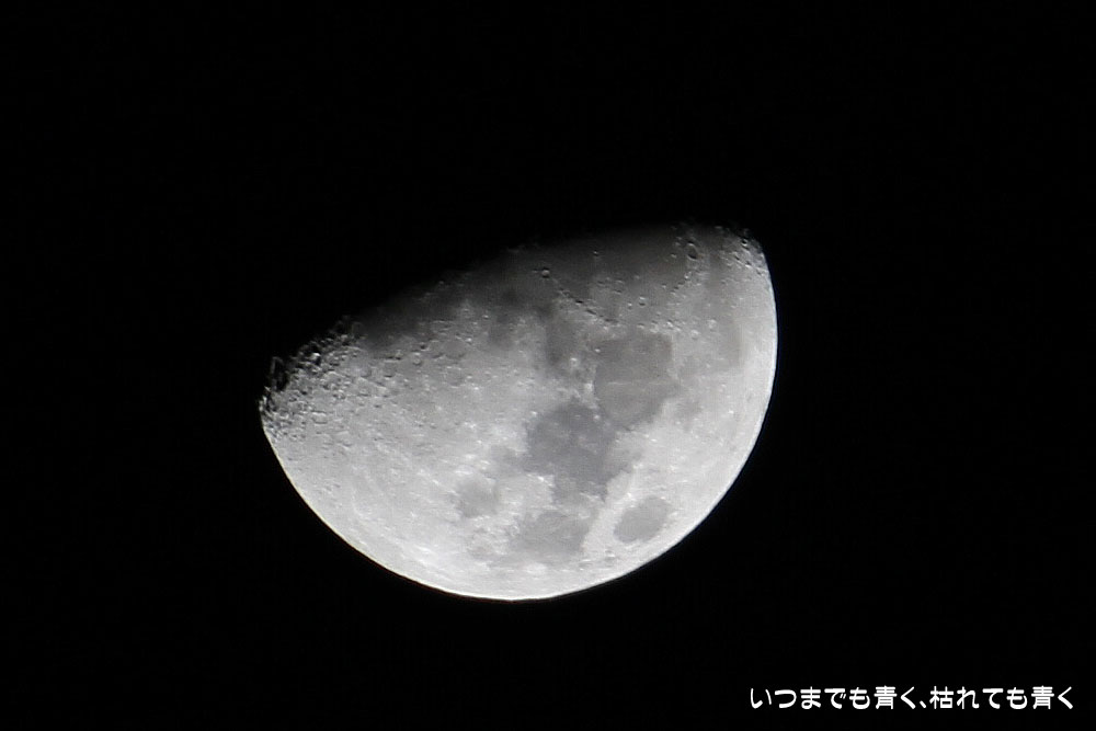あまりにも美しく輝いているので、散歩から戻ってきてカメラで撮影しました。250mm望遠、ISO100、1/125秒、F5.6で撮影、昼間とかわらぬ明るさの月です。