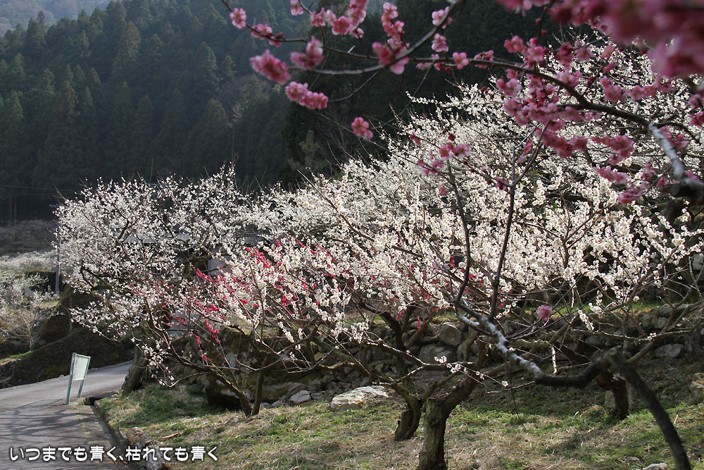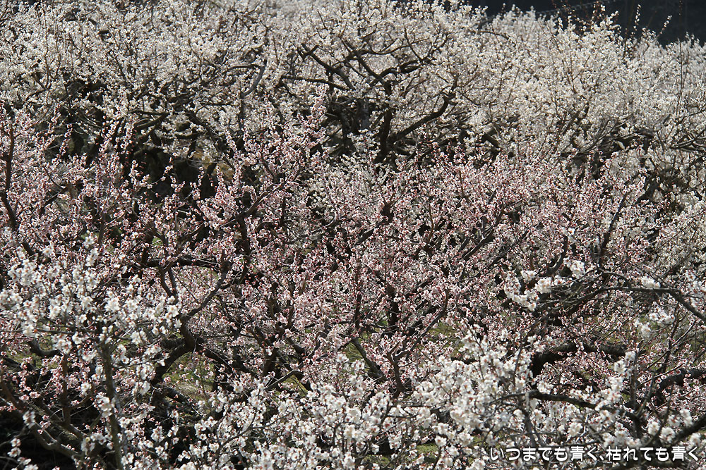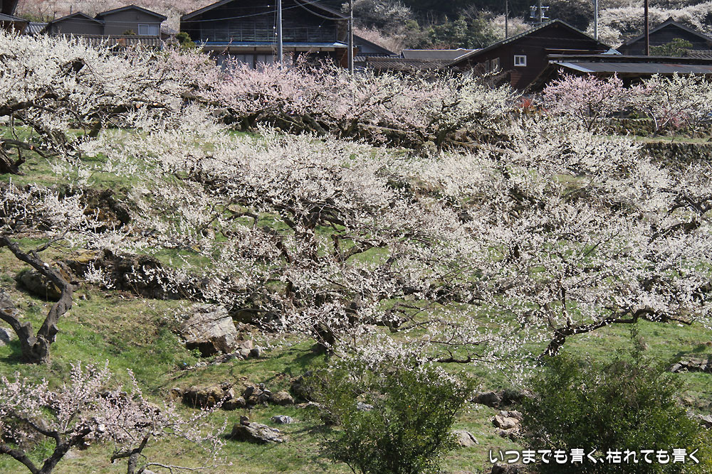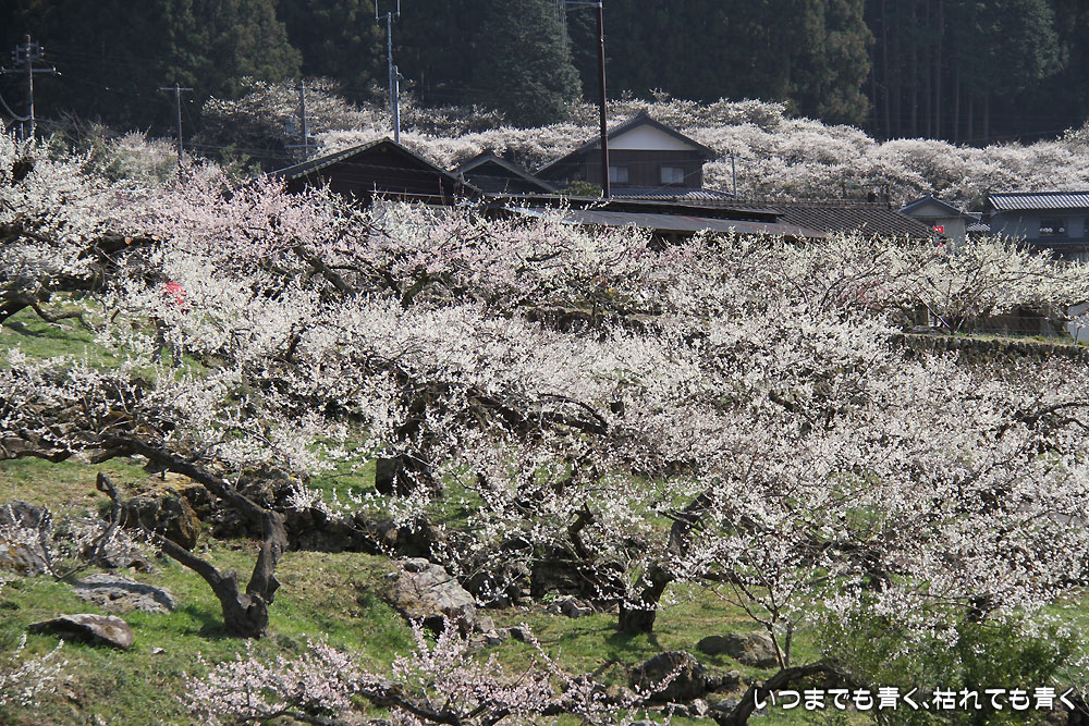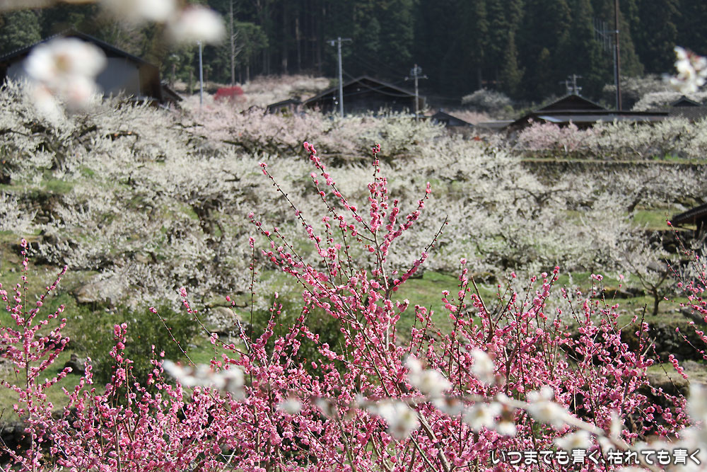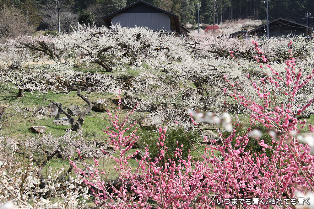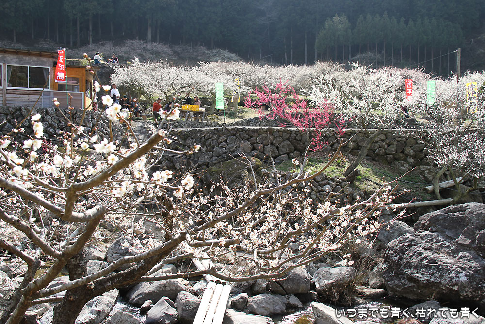 川売の梅は、観光用の梅園ではなく、ここの地区の農家が梅の収穫を目的とした食用梅栽培の梅園です。農家の方々の大切な梅の木ですので、マナーを守って見学させていただくということは忘れてはいけません。 山の合間にたくさんの梅の花が咲き誇る光景は、まさに桃源郷(ここは梅ですが、俗世間を離れた別天地という意味で)です。梅の花の香りを感じながら花を楽しんで見て歩き、時折地元の人と言葉を交わしたりする時間は、本当に別世界のようでした。