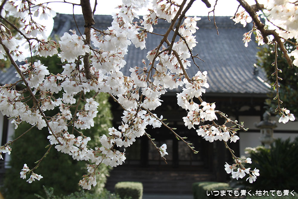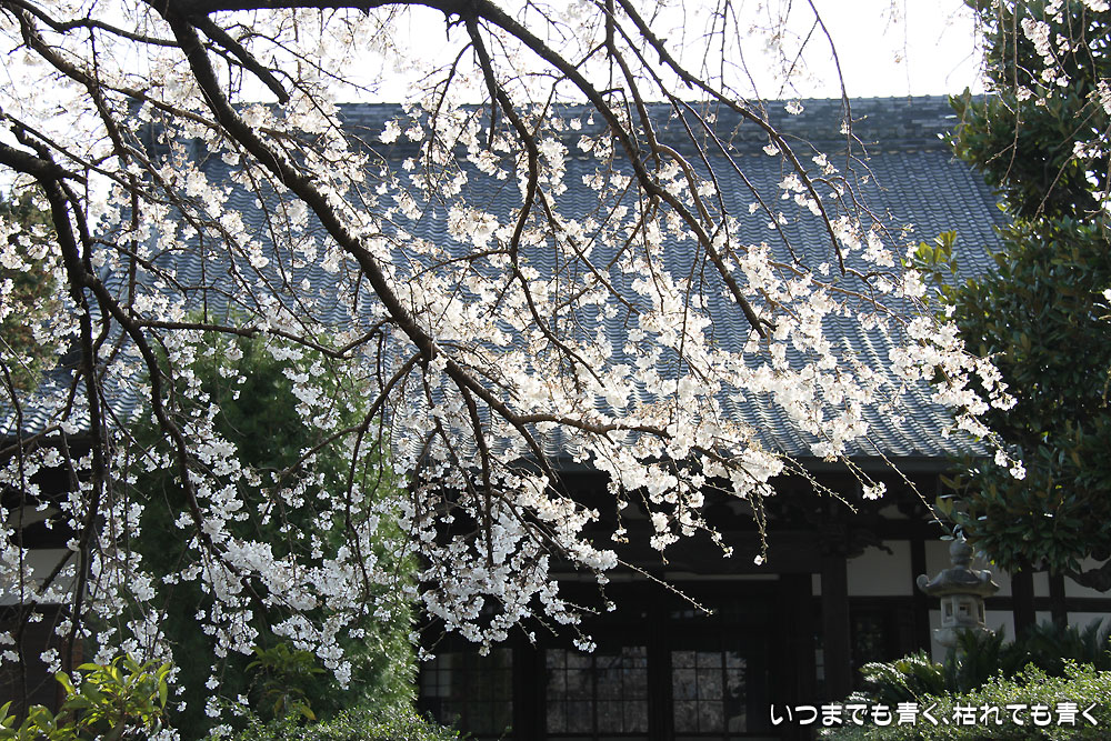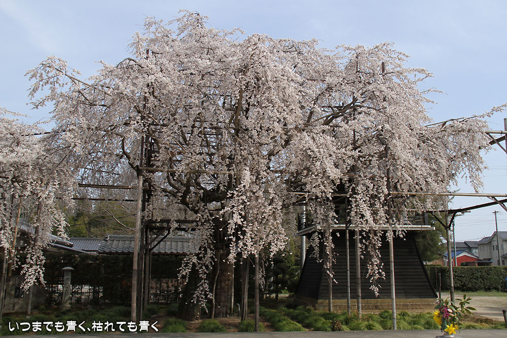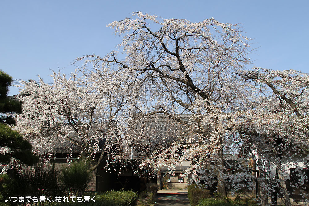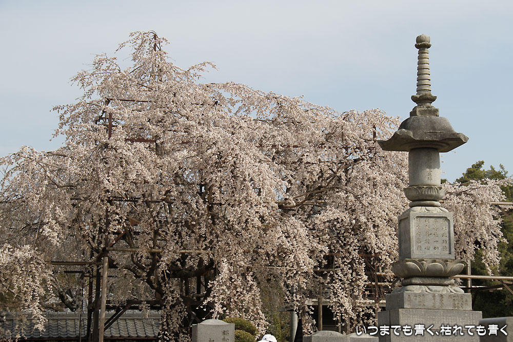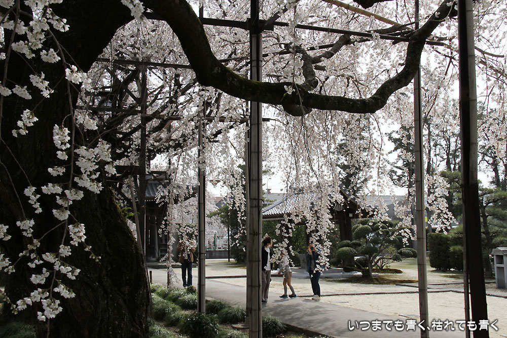 ここは昨年初めて訪れて気に入ったお寺。ここは穴場なのか、見物に訪れる人はそう多くなくポツリポツリと入れ替わり人が訪れる程度です。このお寺のしだれ桜は天然記念物に指定され、樹齢は300年。残念なことにすでに散り始めていて、昨年見たようなボリュームは無く迫力不足でちょっと残念。ちょうどご住職がいらっしゃったので声をかけてお話を伺いましたが、早いときはもっと早く開花する年もあるそうです。来年はもう少し早く来てみようと思います。