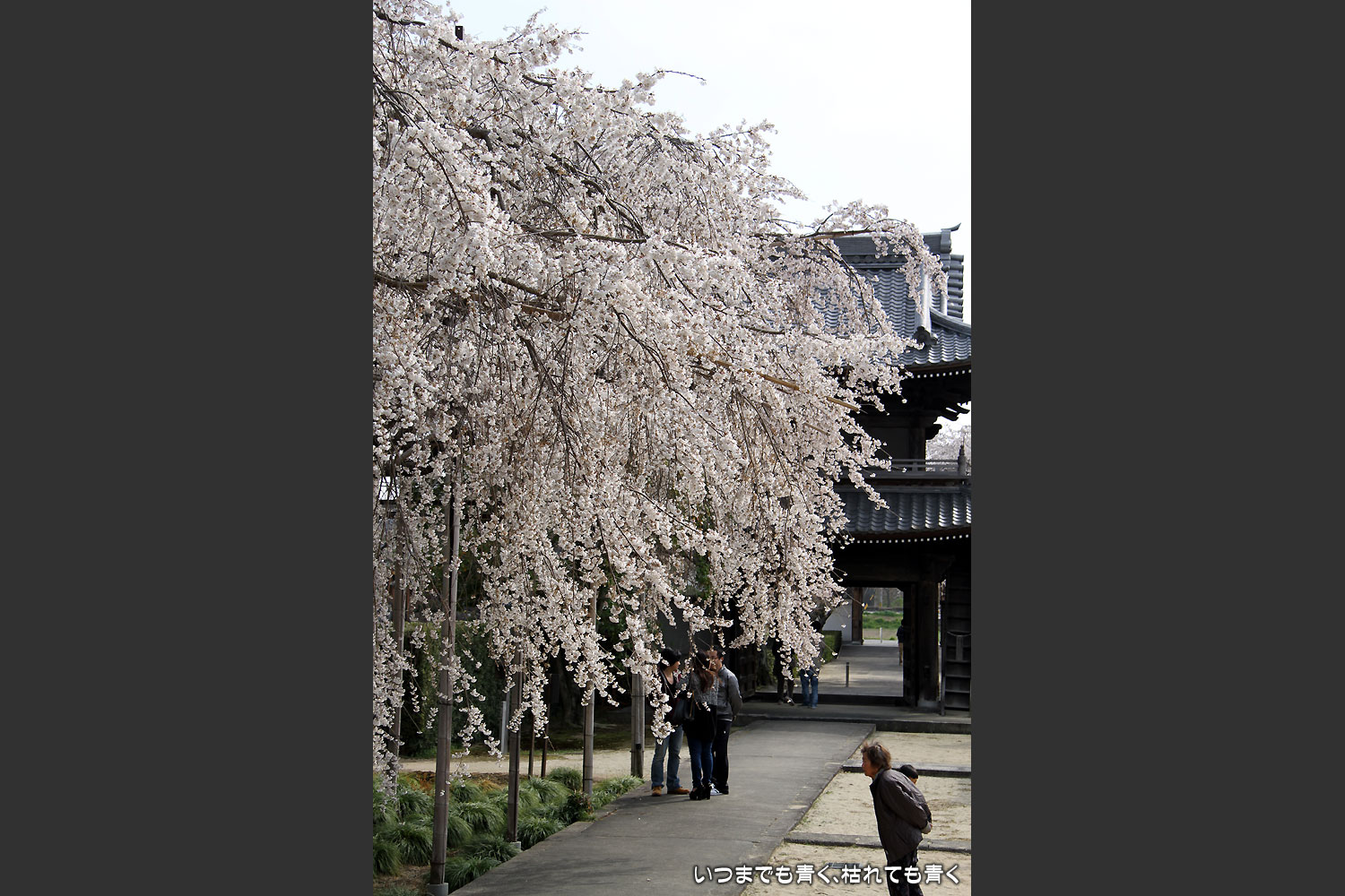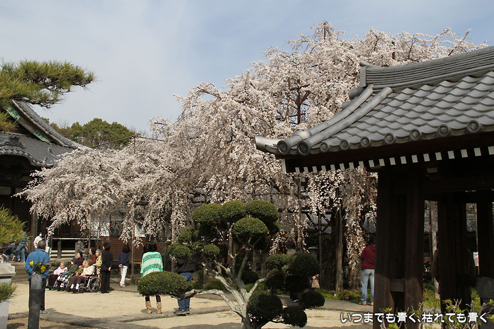 昨年に続き二度目の訪問です。境内のしだれ桜は2本あり、ともに樹齢300年の名木です。今年もたくさんの花が満開で見ごたえ充分、多くの人が次々と訪れて賑やかでした。
