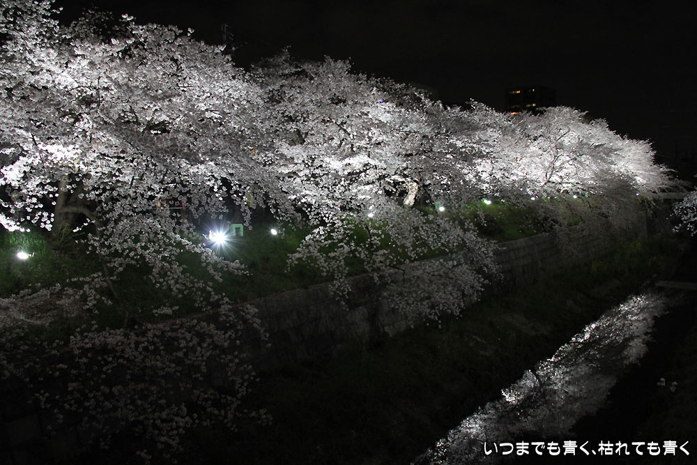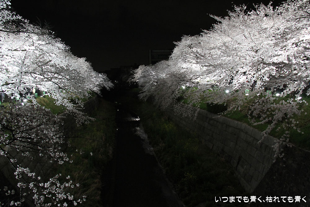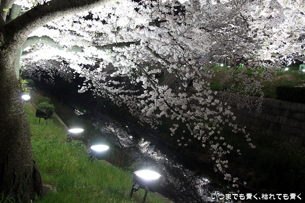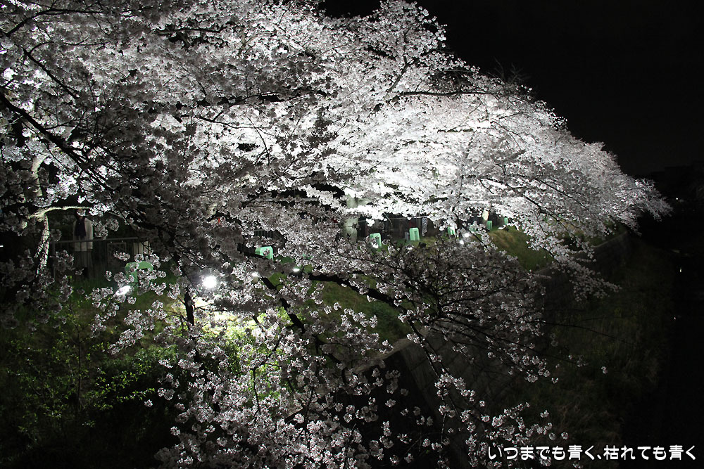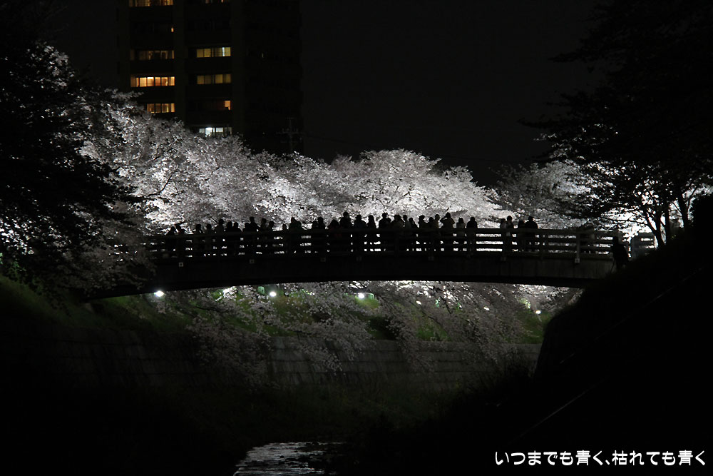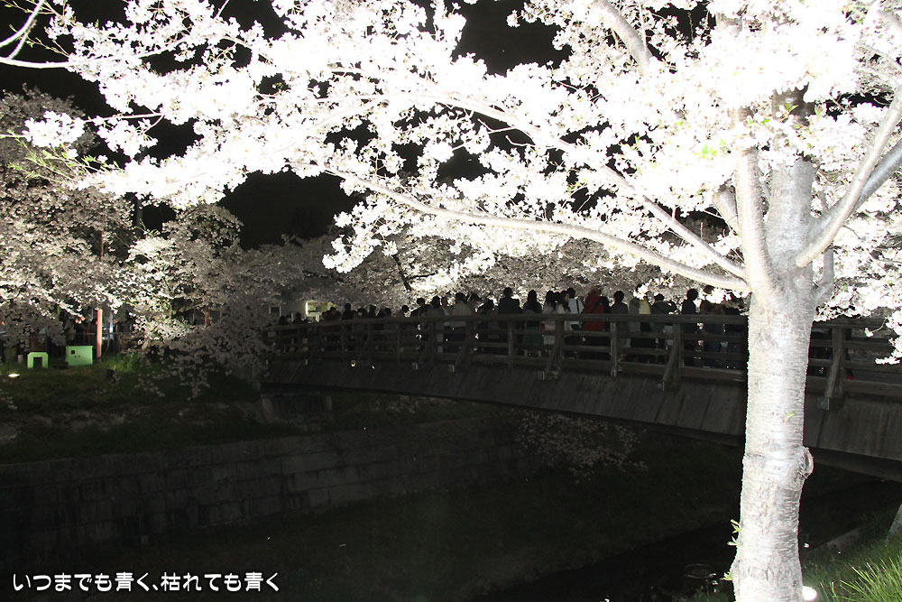 着いたのが夜の18時半を過ぎていましたので、今年は昼間の壮観な光景は見る事ができませんでしたが、かなえ橋と鼎(かなえ)小橋の間のライトアップされた桜は今年もとても美しかったです。