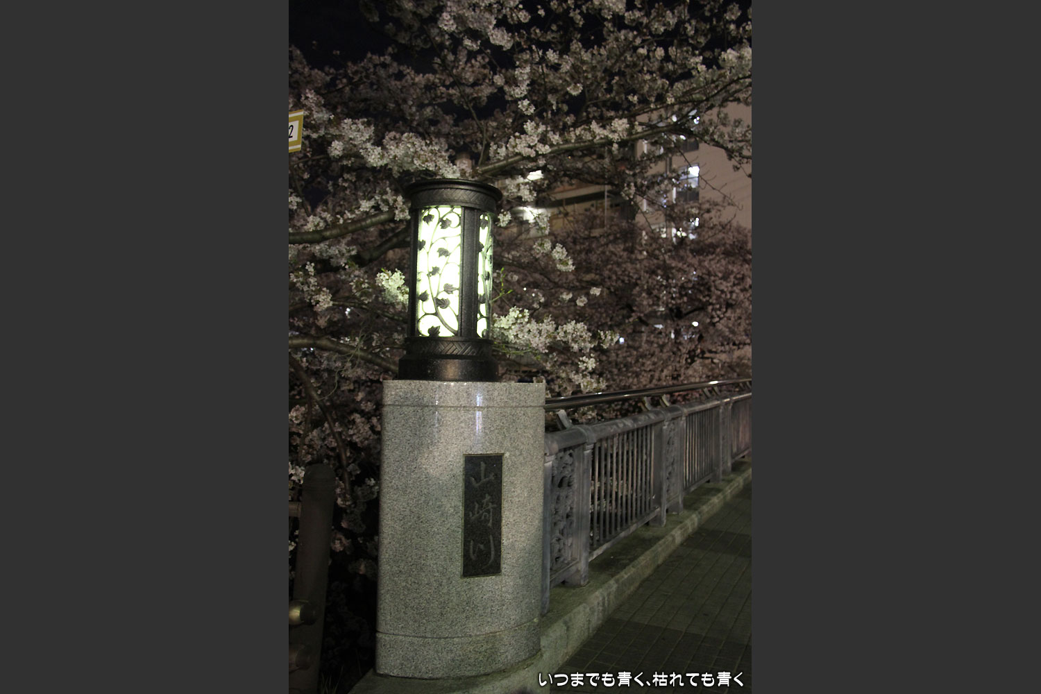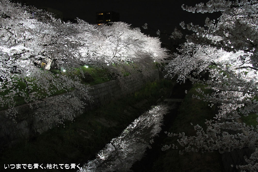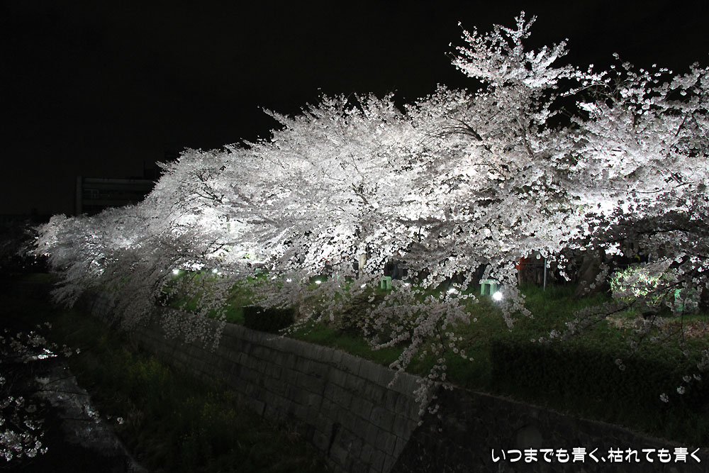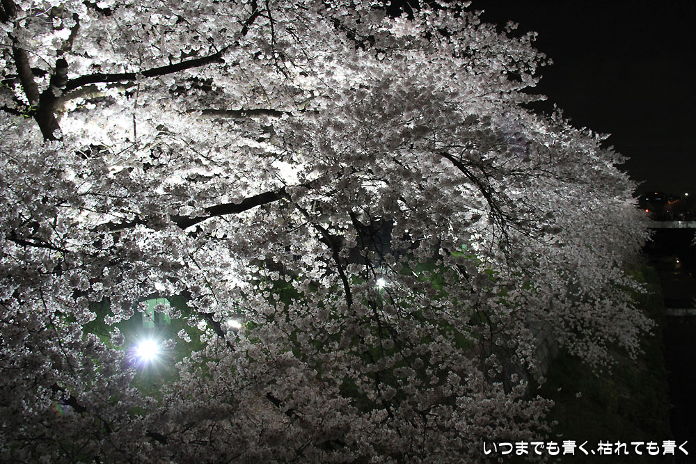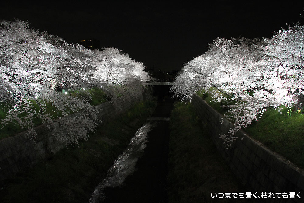 着いたのが夜の18時半を過ぎていましたので、今年は昼間の壮観な光景は見る事ができませんでしたが、かなえ橋と鼎(かなえ)小橋の間のライトアップされた桜は今年もとても美しかったです。