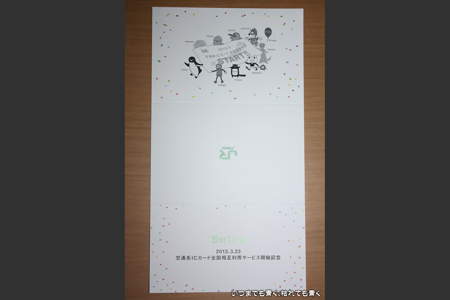 約1ヶ月遅れですが、東京に住む友人に頼んで買っておいてもらった、「交通系ICカード全国相互利用サービス開始記念Suica」を本日やっと受け取ることができました。