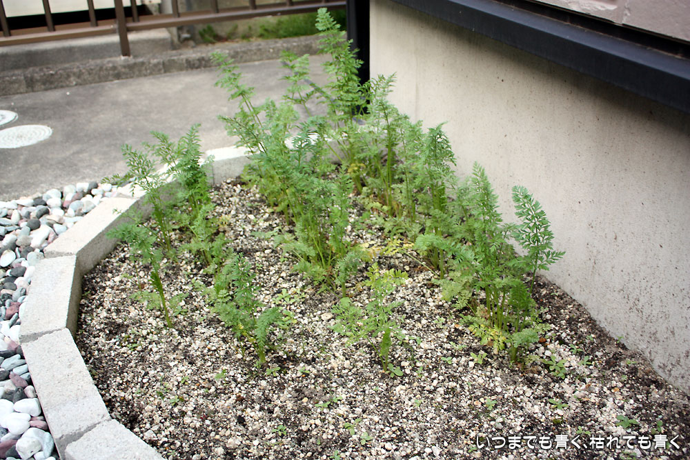 ちなみに、昨年蒔いた「ベビーキャロット」と「ハツカダイコン・紅白」ですが、全然育たずに冬に枯れたものが多かったのですが、そのままにしておいたものが、春とともにスクスクと育っています。食べられるほどに育つかどうかは疑問ですが、条件さえうまく揃えばなんとか育つということがわかりました。