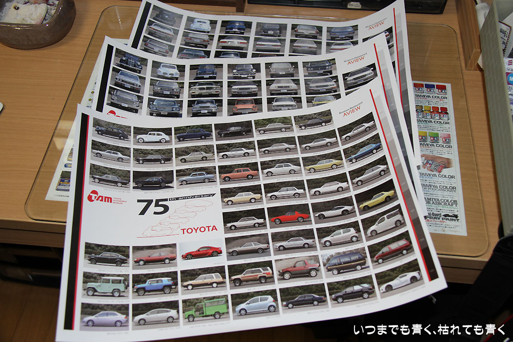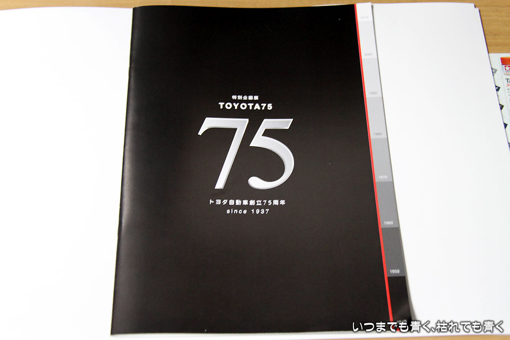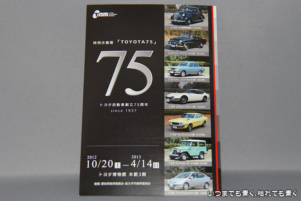 ![]() 「TOYOTA75」パンフレット | ![]() レストランで食事をすると一枚もらえます |