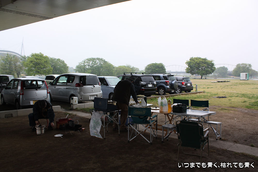 今年も、昨年の春同様、ゴールデンウィークでの開催です。4月30日は天気予報が雨だったにもかかわらず、中止や延期などという言葉は我々の辞書には存在せず、予定通りの開催となりました。予報通り、あいにくの雨でしたが、心配していたほど雨も風もひどくはなく、開催にはまったく問題ありませんでした。
