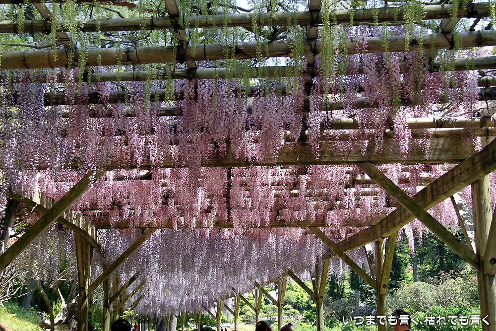 修善寺虹の郷 「藤のトンネル」 ぶらり家族旅 2013年5月3日(金) 23:59 修善寺虹の郷の「藤のトンネル」。 約300m続く壮大な藤棚です。この藤棚と藤の花の美しさを残そうと思って撮影したのですが、藤を魅力的に撮影するのは本当に難しいということを痛感。ということで、「藤のトンネル」の写真は、紹介スナップ写真という位置づけでご覧下さい。