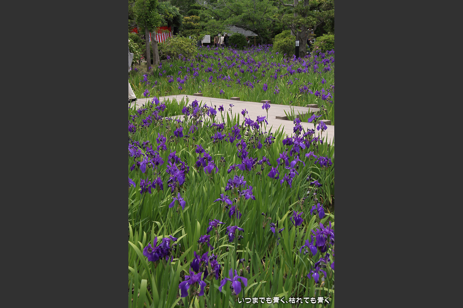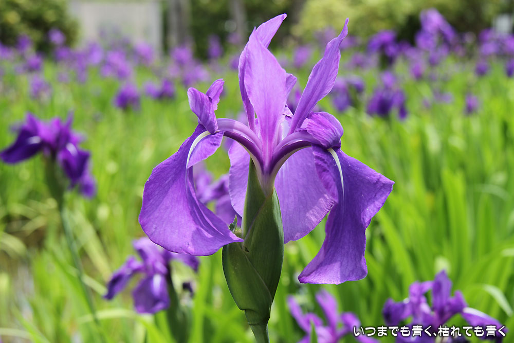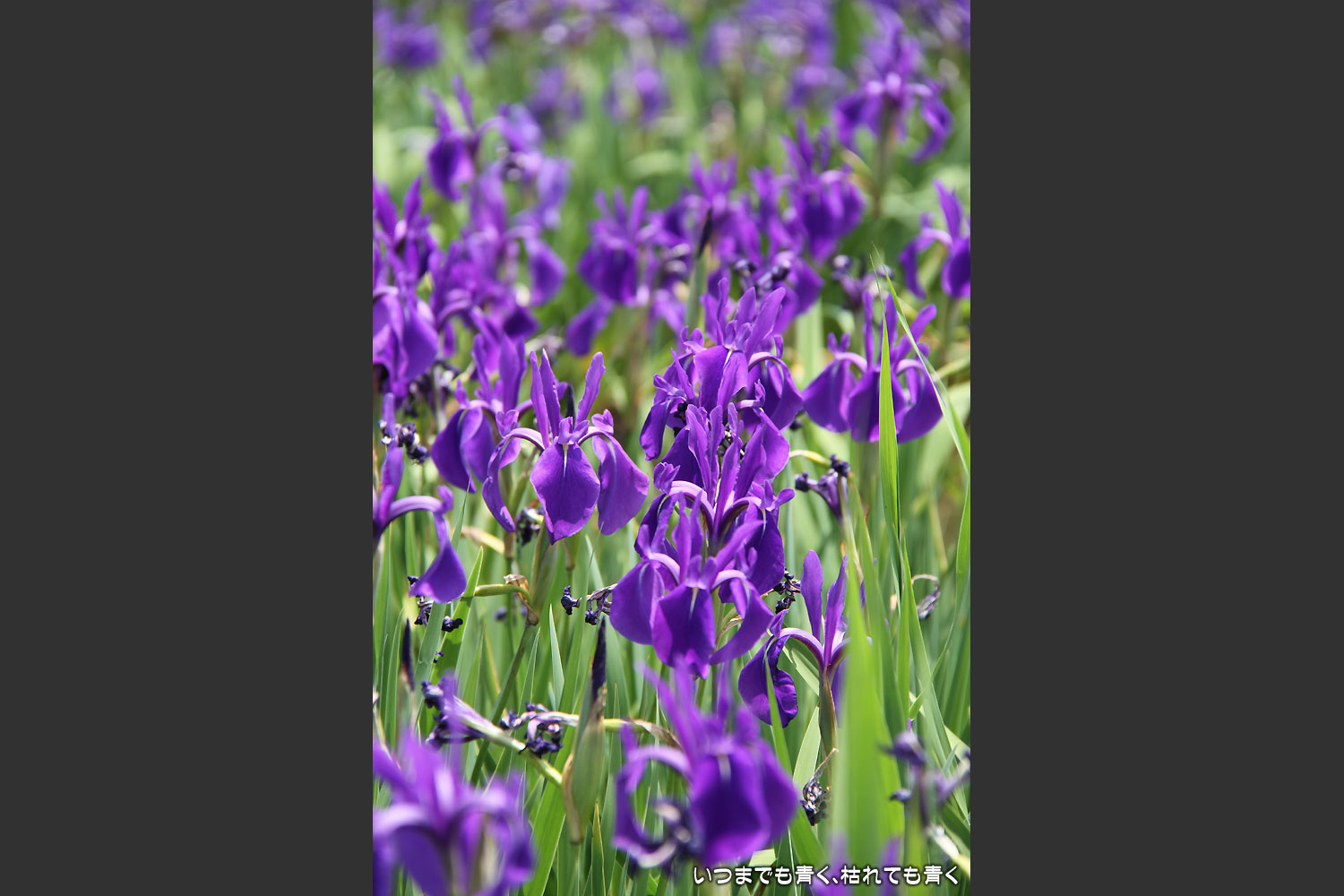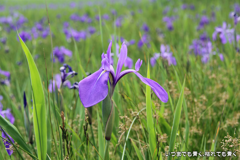 昨年は駐車場に車をとめることもできないくらいの人出でしたが、今年は一週間ほど時期が遅かったことと朝一番だったこともあって、少し待てば人の入らない写真を撮ることができるこらいの人出でした。枯れている花も多く、近くで写真を撮るには少々きつい状態でしたが、緑の中に紫の花が続く光景は気品があって心落ち着きます。