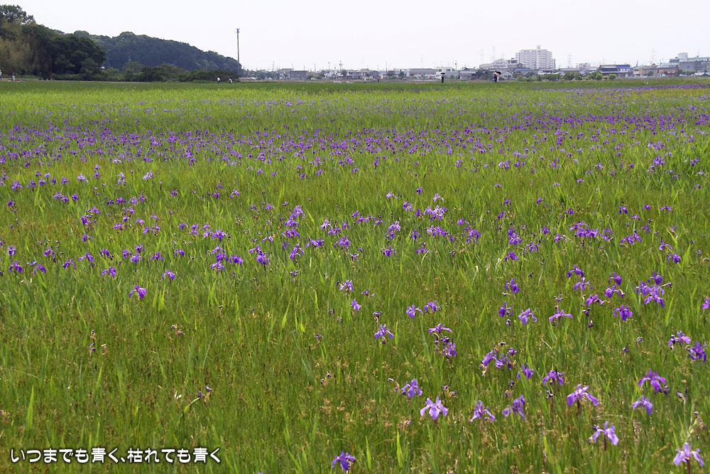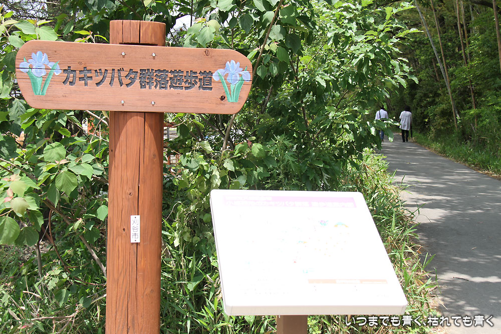 「小堤西池のカキツバタ群落」の方が私の家からは近いのですが、こんな場所があることを初めて知りました。国の天然記念物なので、自生が原則であり人の手を入れられないために、手入れされたかきつばたよりは花が小さいと、説明員の方はおっしゃっていました。説明員の方の話はけっこう興味深くて、かきつばたはひとつで順番に3回花を咲かすそうで、一番花、二番花、三番花というそうです。今週は二番花や三番花の時期なので、きれいな写真を撮るには枯れた花が無い一番花の時期がいいよとも教えていただきました。また、かきつばたは普通3枚の花びらなのですが、たまに2枚や4枚以上のものが咲くということも教えてもらって、今咲いている2枚のものと4枚のものの場所も教えていただきました。その他には、あやめとかきつばたの違いもわかりやすく説明していただいたり、今更ながらの知識をいくつか得ることができました。