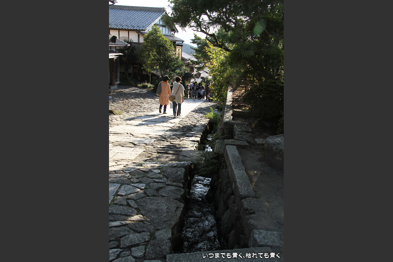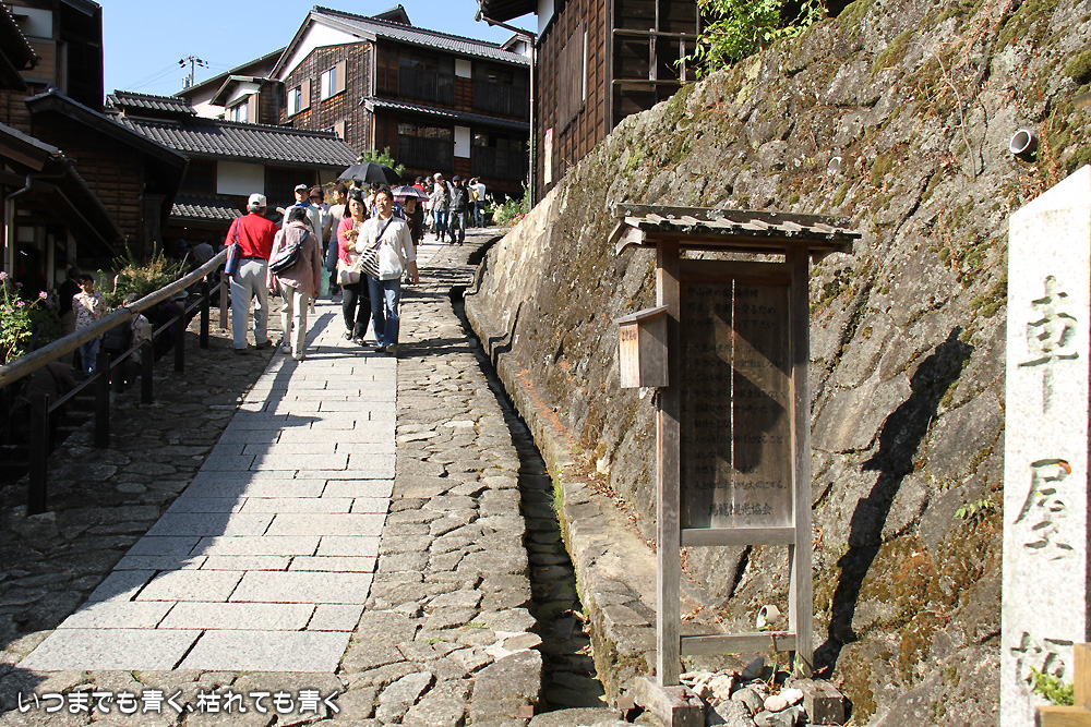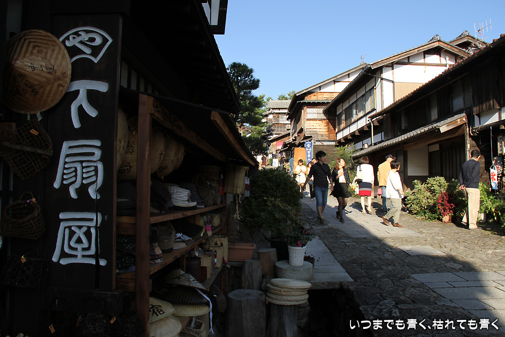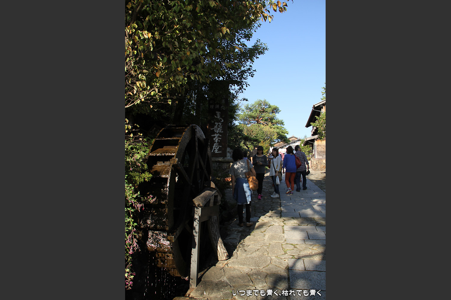中山道木曽馬籠宿 ぶらり家族旅 2013年10月13日(日) 23:19 今日は、とても良い天気。その陽気に誘われて、奥さんと末娘と3人で木曽の山の中、馬籠宿をのんびりと歩いてきました。 木曽路の街道は、思っていたよりも細い石畳の坂道で距離もそれほどでもありません。道の両側には古いたたずまいの建物のお店が連なり、たくさんの観光客でとても賑やかです。思っていた旧街道の雰囲気とはちょっと違っていましたが、古い建物や木曽の山々をのんびりと眺めれば、とても落ち着いた気持ちになれました。