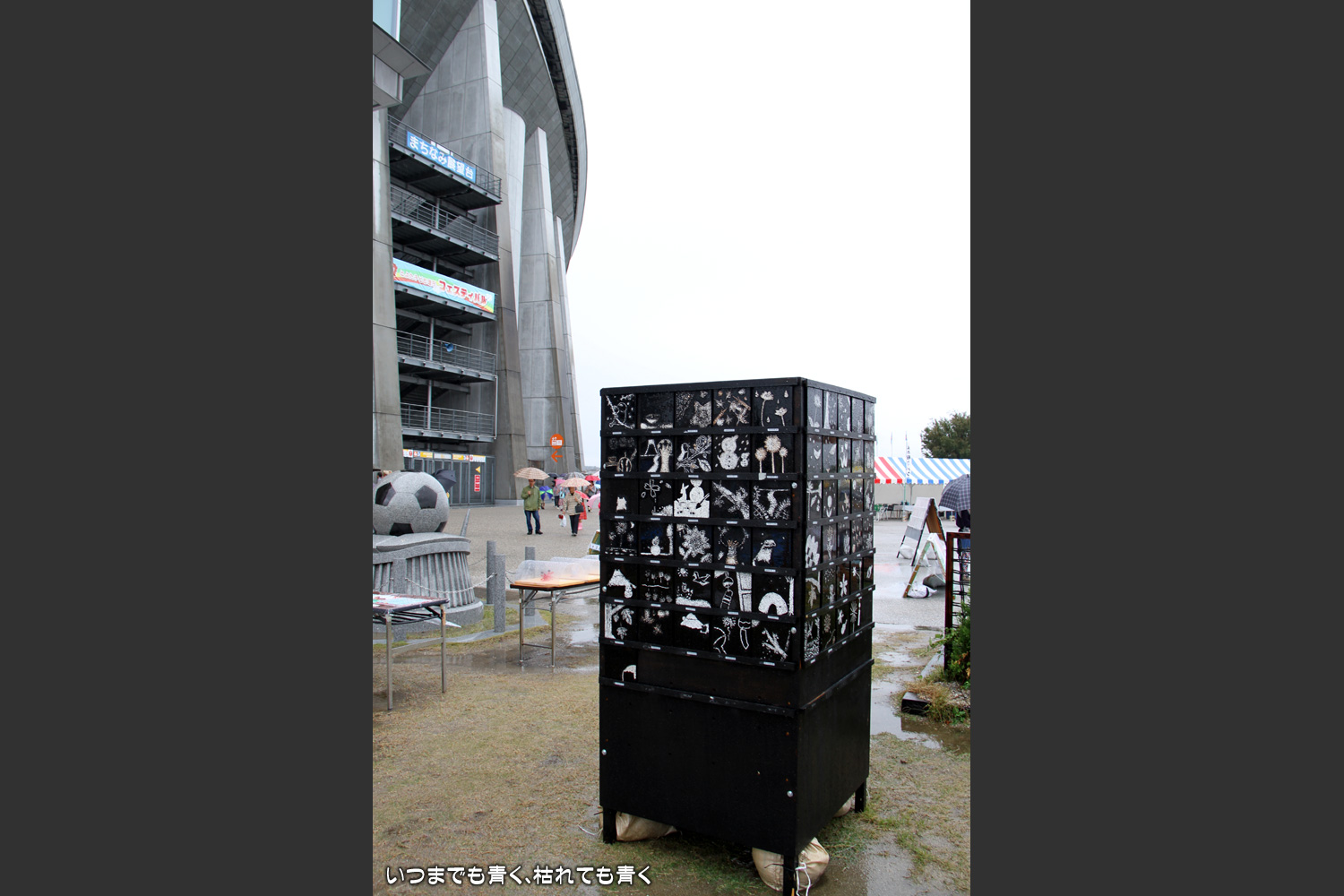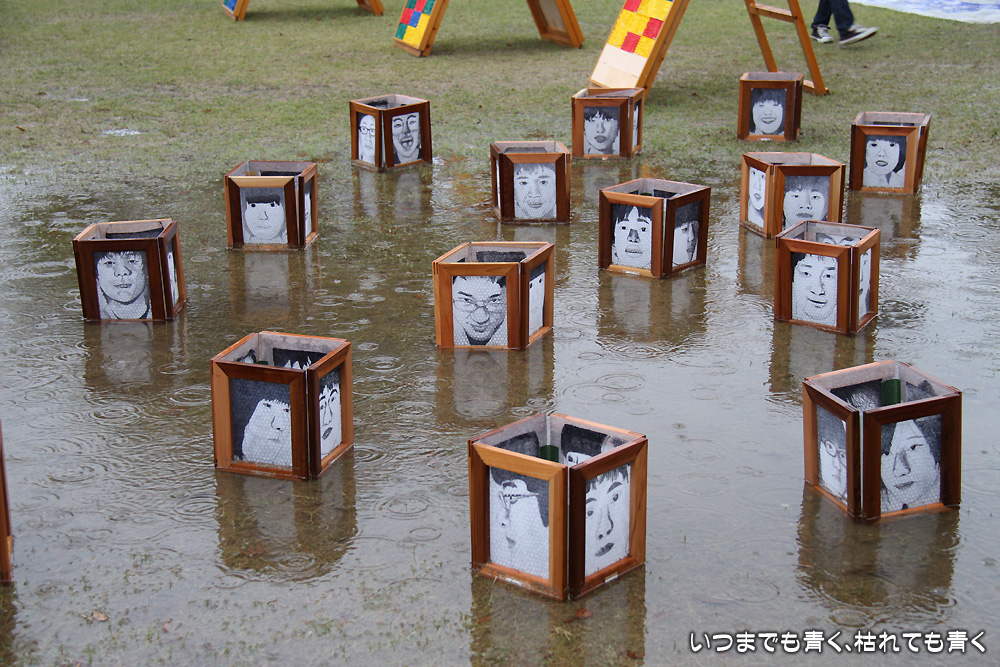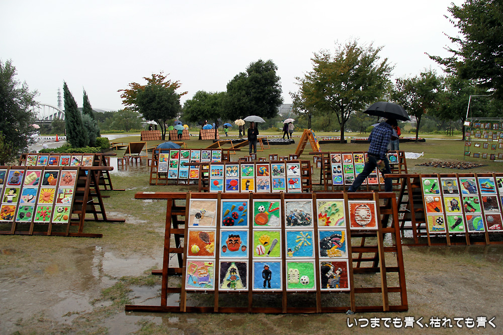 雨中の「子ども造形フェスティバル」 家族の話 2013年10月20日(日) 23:23 今年の「子ども造形フェスティバル」二日目は、生憎の激しい雨でした。 末娘の作品もちゃんと飾られておりましたが、せっかくの子どもたちの作品が雨に打たれて濡れているのは、鑑賞よりも心配が先に立って、ゆっくりと楽しめませんでした。