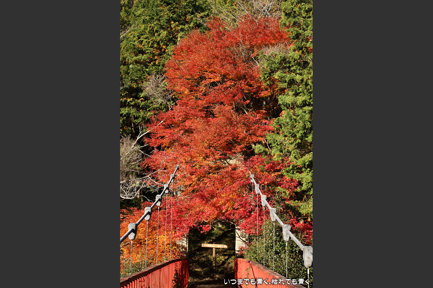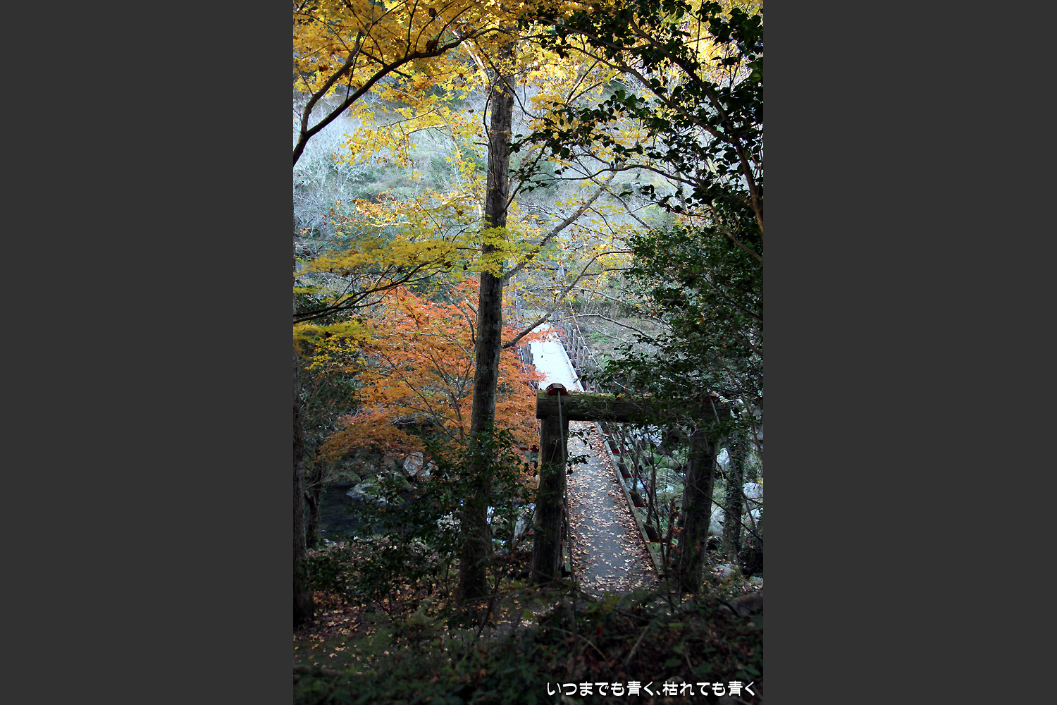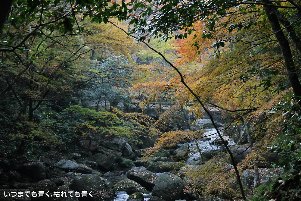 昨日の香嵐渓に続き、今日は王滝渓谷を龍門橋から王滝湖かけ橋まで往復。今回は山道を長く歩くということで、家族は同行拒否だったのでひとりで散策。龍門橋、王滝湖かけ橋間を約3時間近くかけてのんびりと歩きましたが、不動山には登っていませんし、梟ヶ城址にも行っていませんし、宮川散策道も楽しめませんでした。もっと早く動き出さないとダメなくらいに広い場所です。