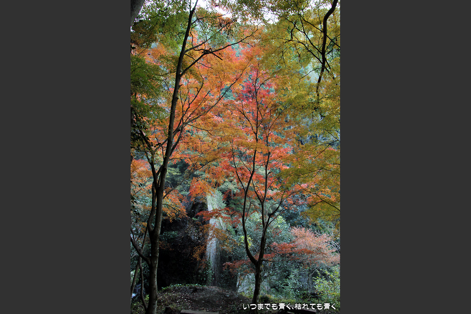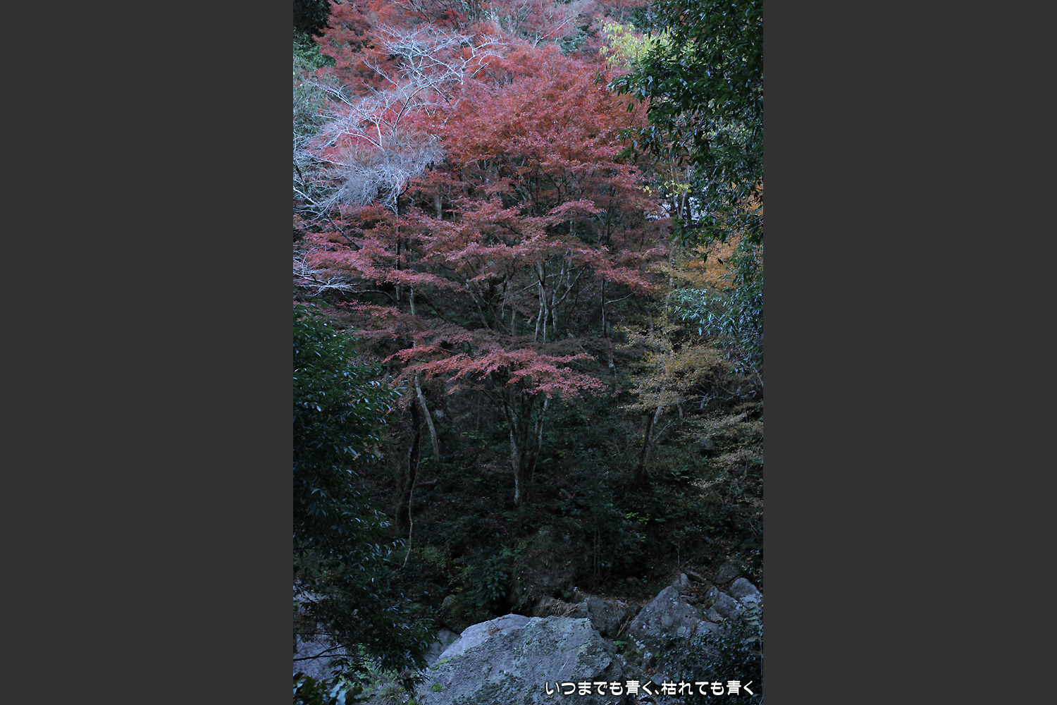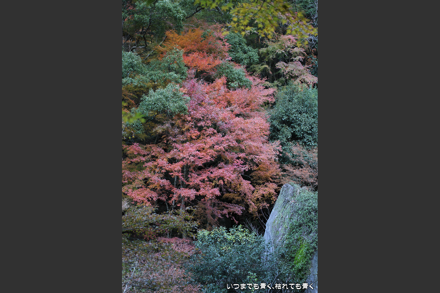 昨日の香嵐渓に続き、今日は王滝渓谷を龍門橋から王滝湖かけ橋まで往復。今回は山道を長く歩くということで、家族は同行拒否だったのでひとりで散策。龍門橋、王滝湖かけ橋間を約3時間近くかけてのんびりと歩きましたが、不動山には登っていませんし、梟ヶ城址にも行っていませんし、宮川散策道も楽しめませんでした。もっと早く動き出さないとダメなくらいに広い場所です。