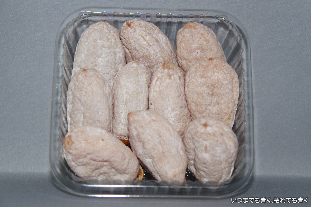 世の中に蔓延している「人工的甘いもの」はもっと安いので、こういう自然の甘いものは高くてちょっと躊躇してしまいます。昔はショートケーキ300円(35年前当時)で、とても高価。逆に干し柿は安かったのでしょうね。。多分。。