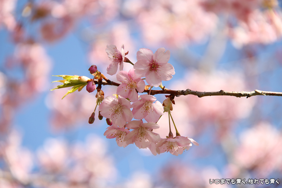 なばなの里の河津桜 ぶらり家族旅 2014年3月24日(月) 23:21 3月22日に行った「なばなの里」の、河津桜。 少し葉が出始めていましたが、まだまだ花に満開の勢いがあって充分楽しめました。 河津桜は、ソメイヨシノのように淡くなく儚くなく、早咲きで明るく元気なイメージの桜です。 私の好きな桜でもあります。