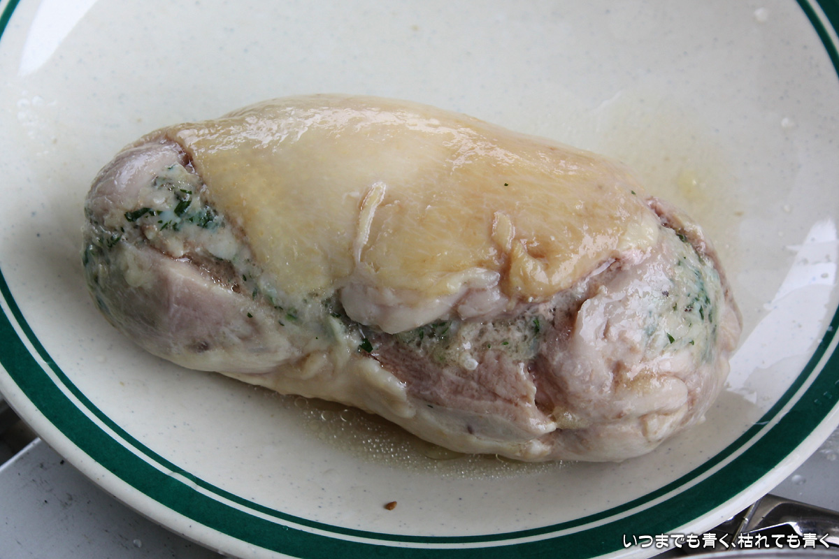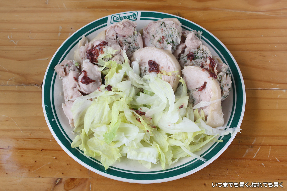 ![]() 手作り蒸し鶏ハム | ![]() 手作り蒸し鶏ハムを盛り付け |