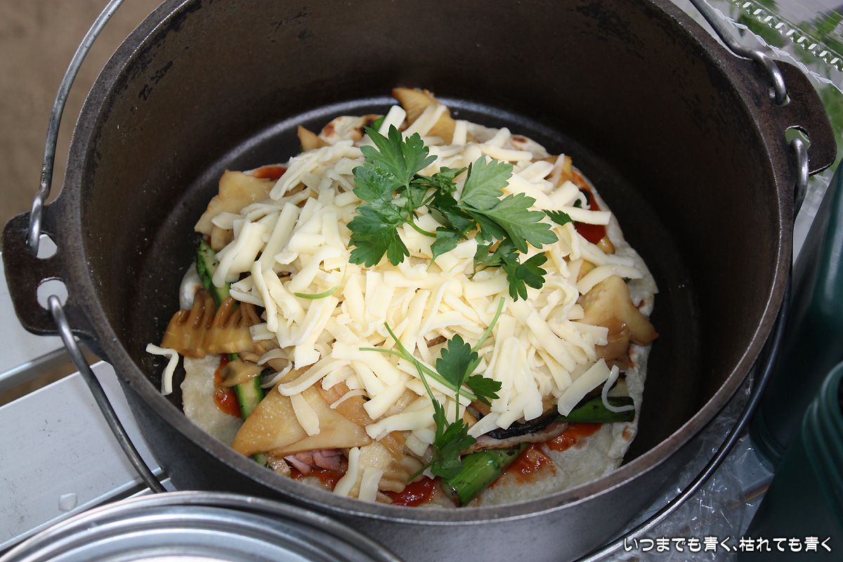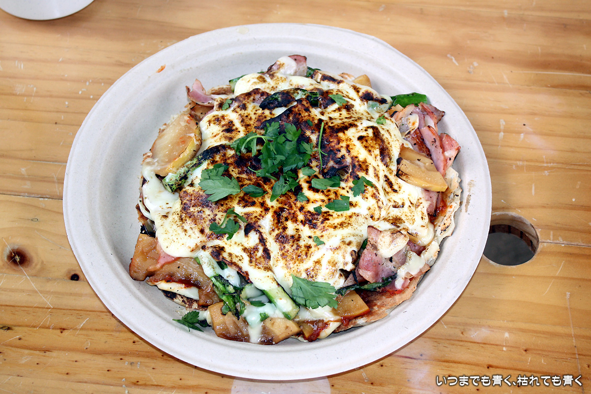 ![]() 手作りピザ | ![]() 焼き上がりの手作りピザ、ボリューム満点! |