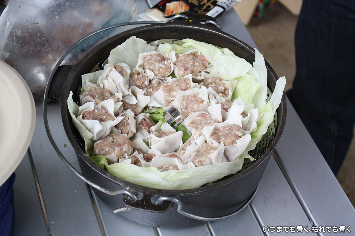 ![]() 手作りシュウマイ | ![]() シュウマイ、ちょっと肉団子風の仕上がり |