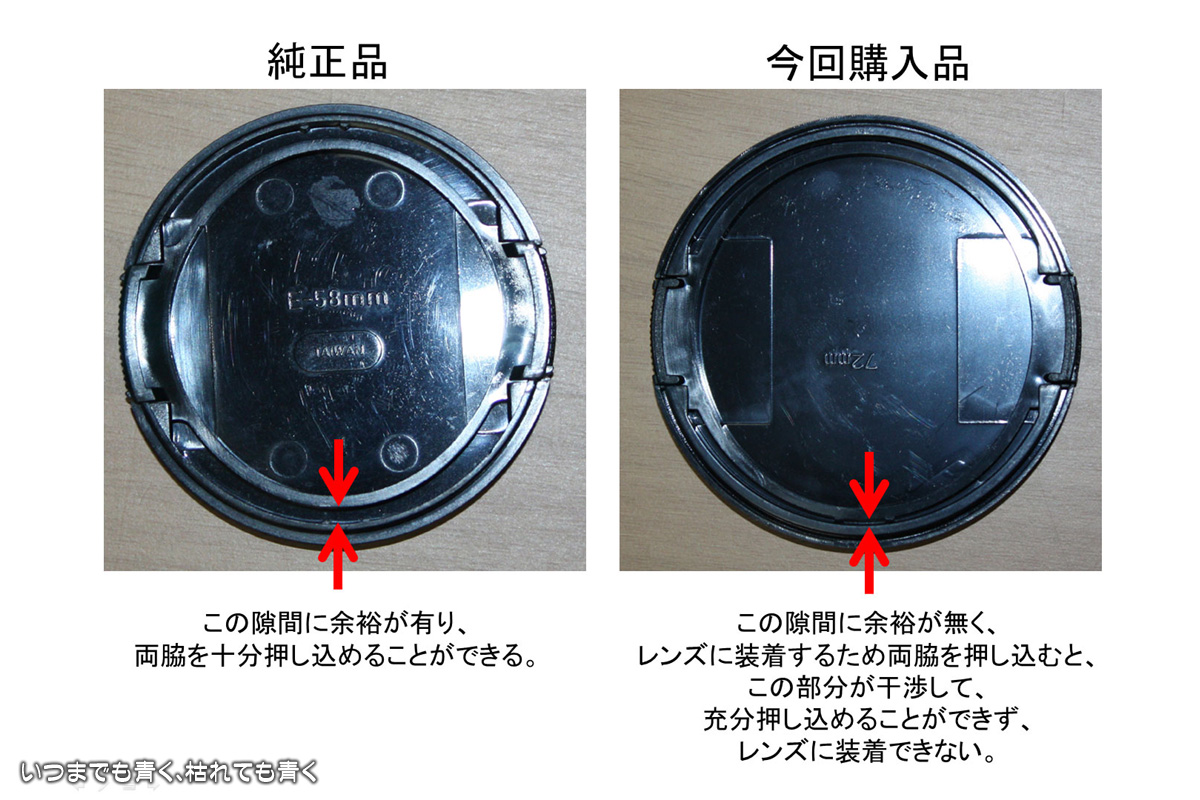 すぐに同じレンズキャップをカメラ店に買いにいったのですが、同じタイプのものはもう販売終了になっており、今は内つまみ式の新しいタイプのものしかありませんでした。しかも、レンズキャップごときに800円+消費税。