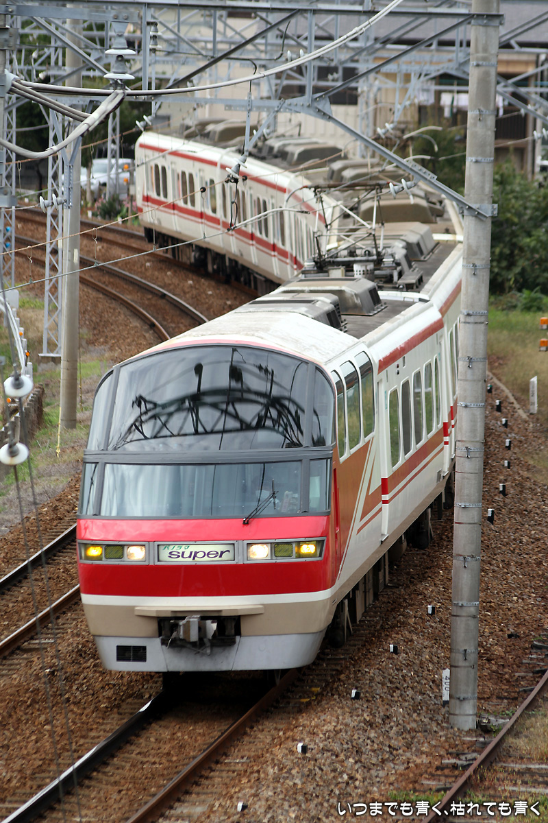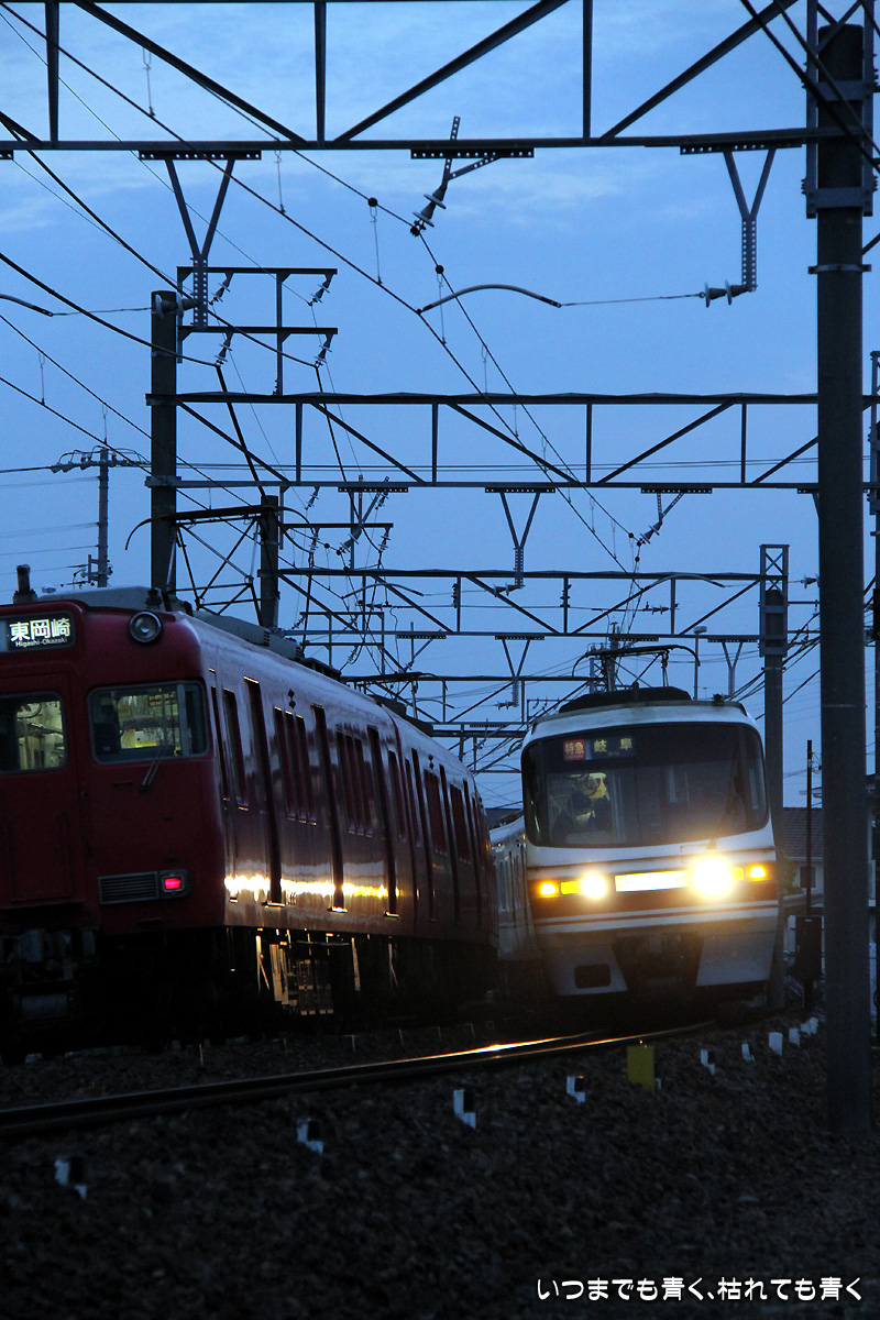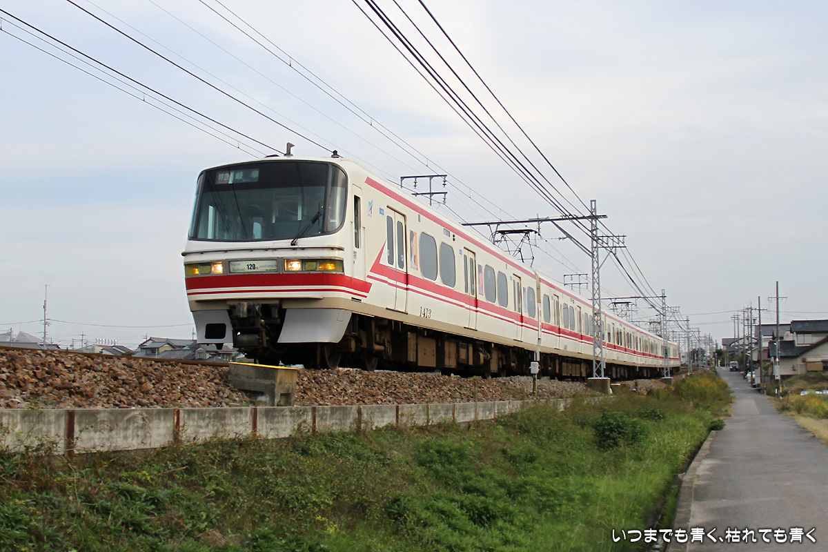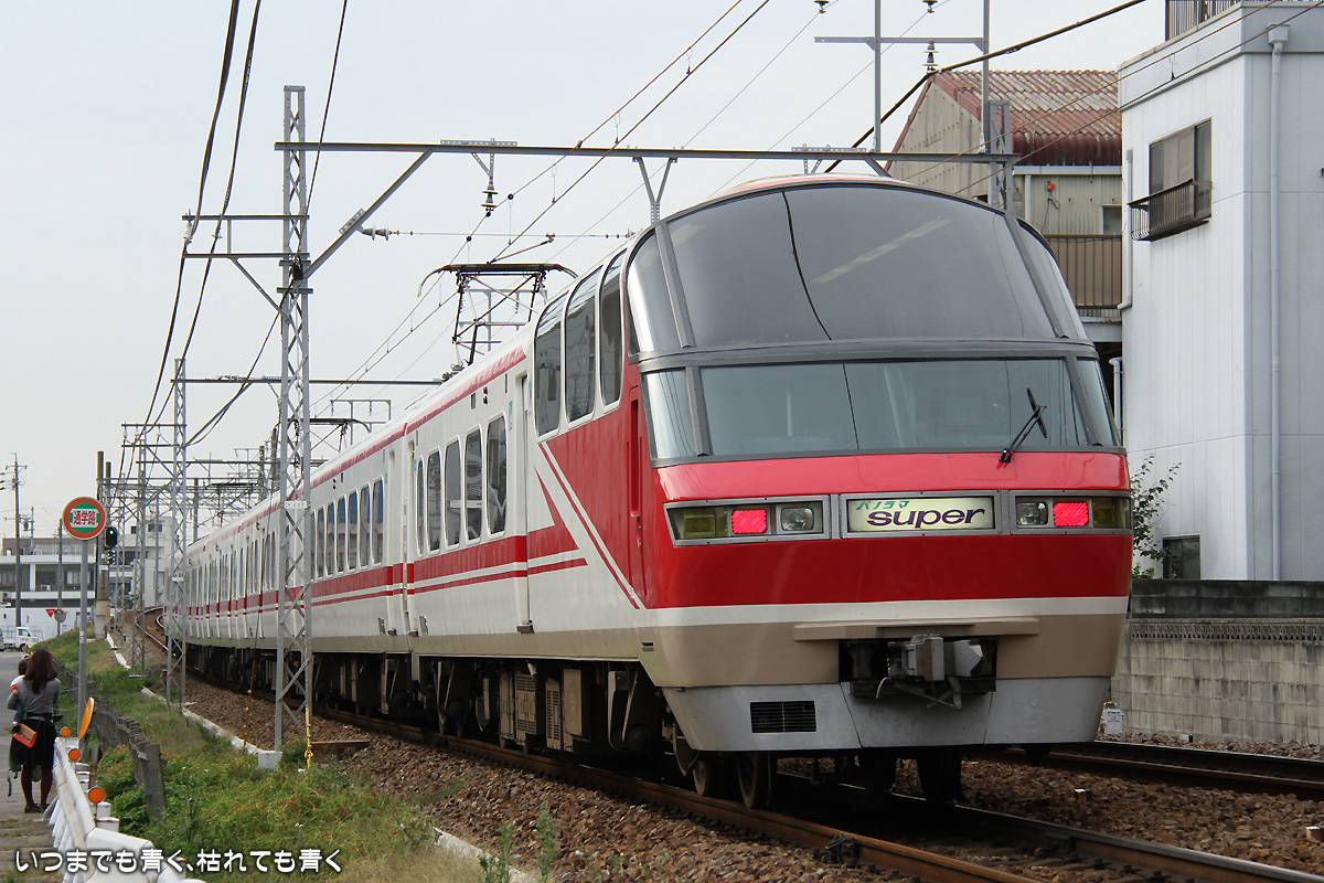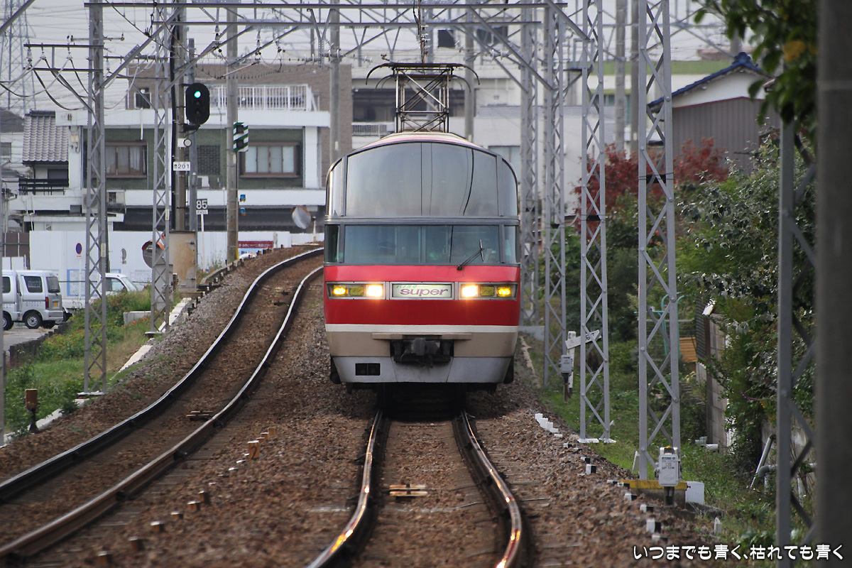 名鉄パノラマsuper 鉄道写真 2014年11月8日(土) 23:22 本日撮影した、名鉄パノラマSuper。 こうして、名鉄電車を撮影してみると、引退した赤いパノラマカーを撮影していなかったのが、とても残念。 なお、名鉄は明治27年6月創業から今年で120年ということで、編成によってはヘッドマークの文字が「パノラマsuper」ではなく、「120年の感謝を込めて」、「おかげさまで120周年」、「Nagoya Railroad 120th anniversary」に置き換わっています。