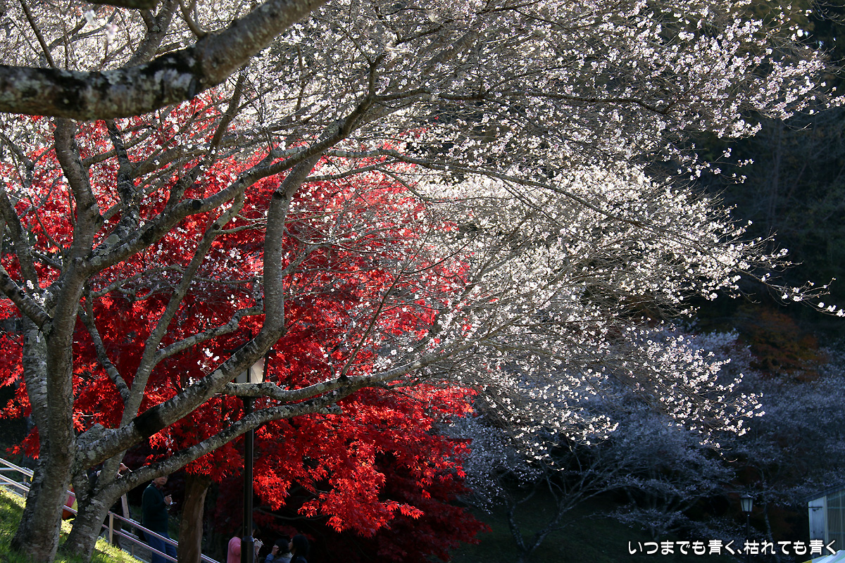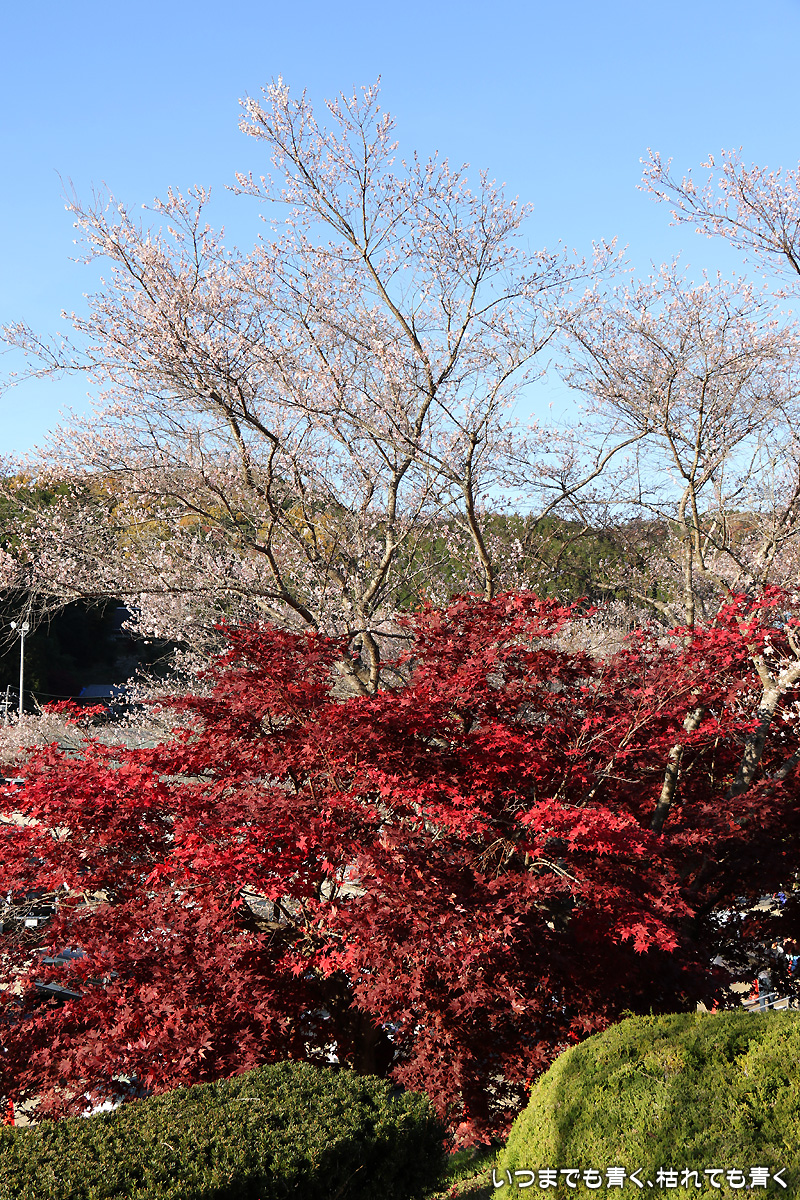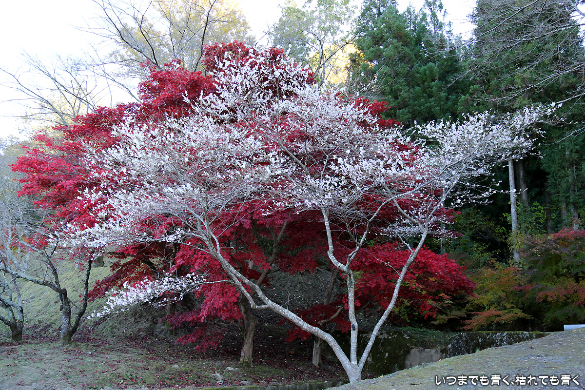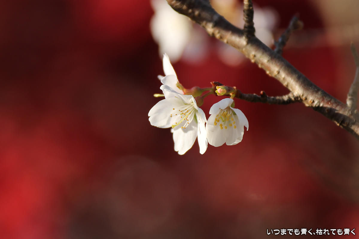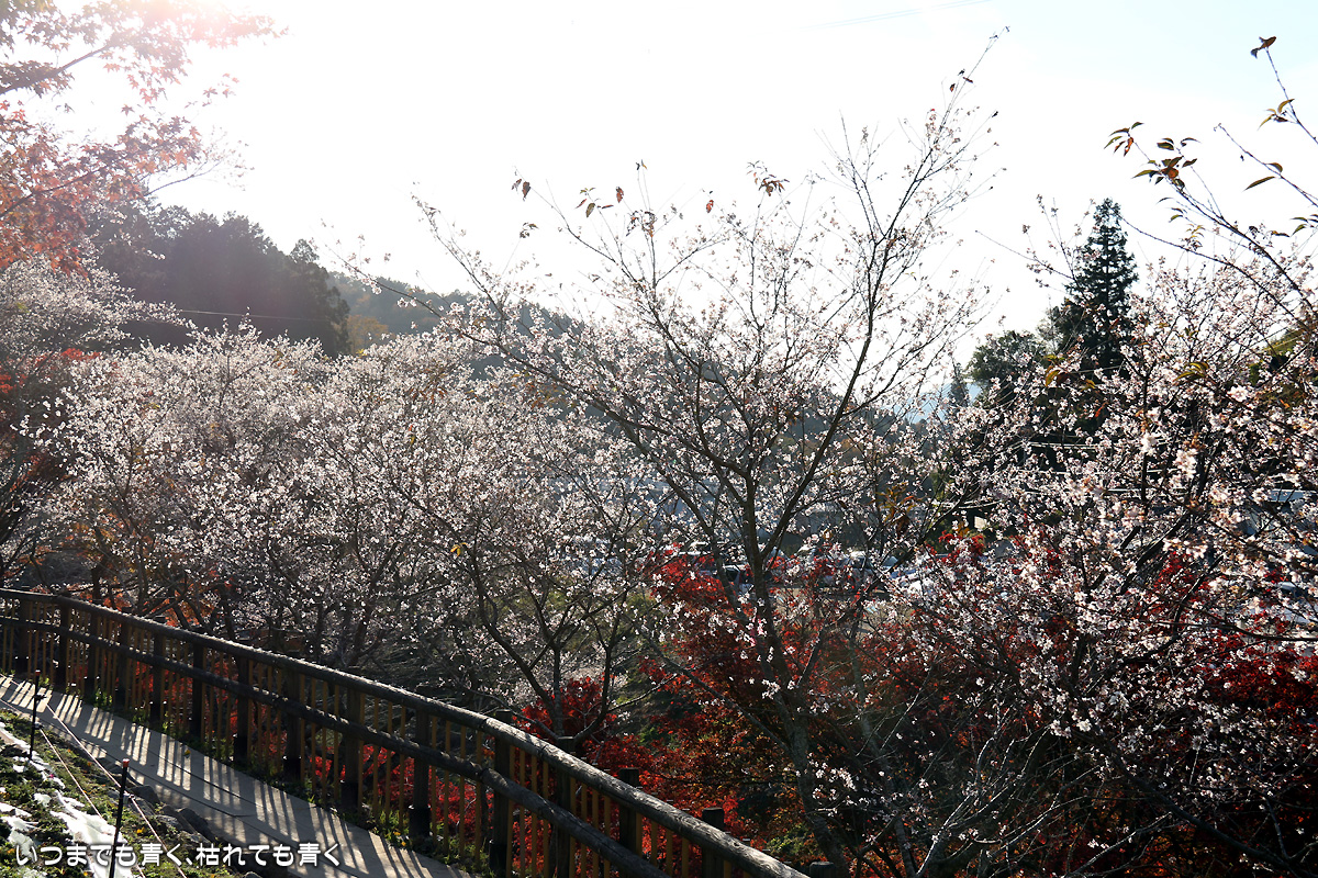 四季桜は年に2度咲く桜で、秋の花は紅葉と同じ時期に咲き、白と赤の紅白がとても美しく感じました。家族と一緒ならばのんびりと楽しむところですが、ひとりだとカメラを持っていろいろ動き回ってしまい、慌ただしく過ごしてしまいました。