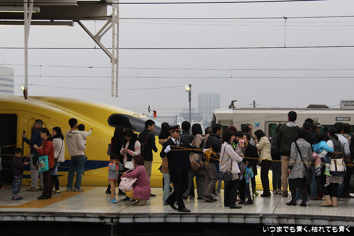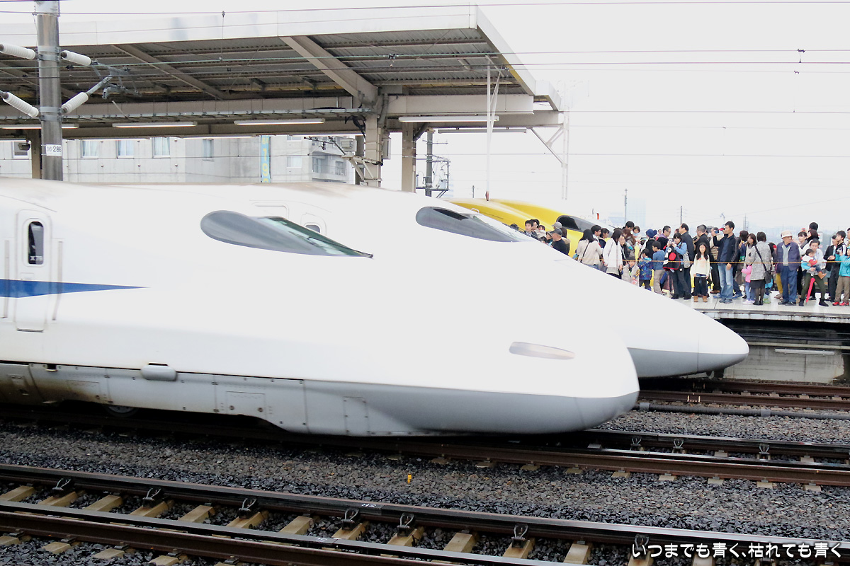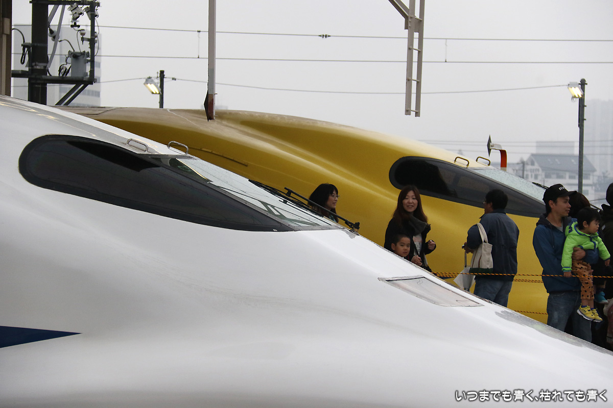 しかし、始めて間近に見るドクターイエローはとても新鮮で美しく、新幹線の安全を守っているという存在感を充分感じさせてくれました。窓にはブラインドが下ろされており内部は見ることはできなかったのですが、事前に申し込めば内部見学もできたようです。