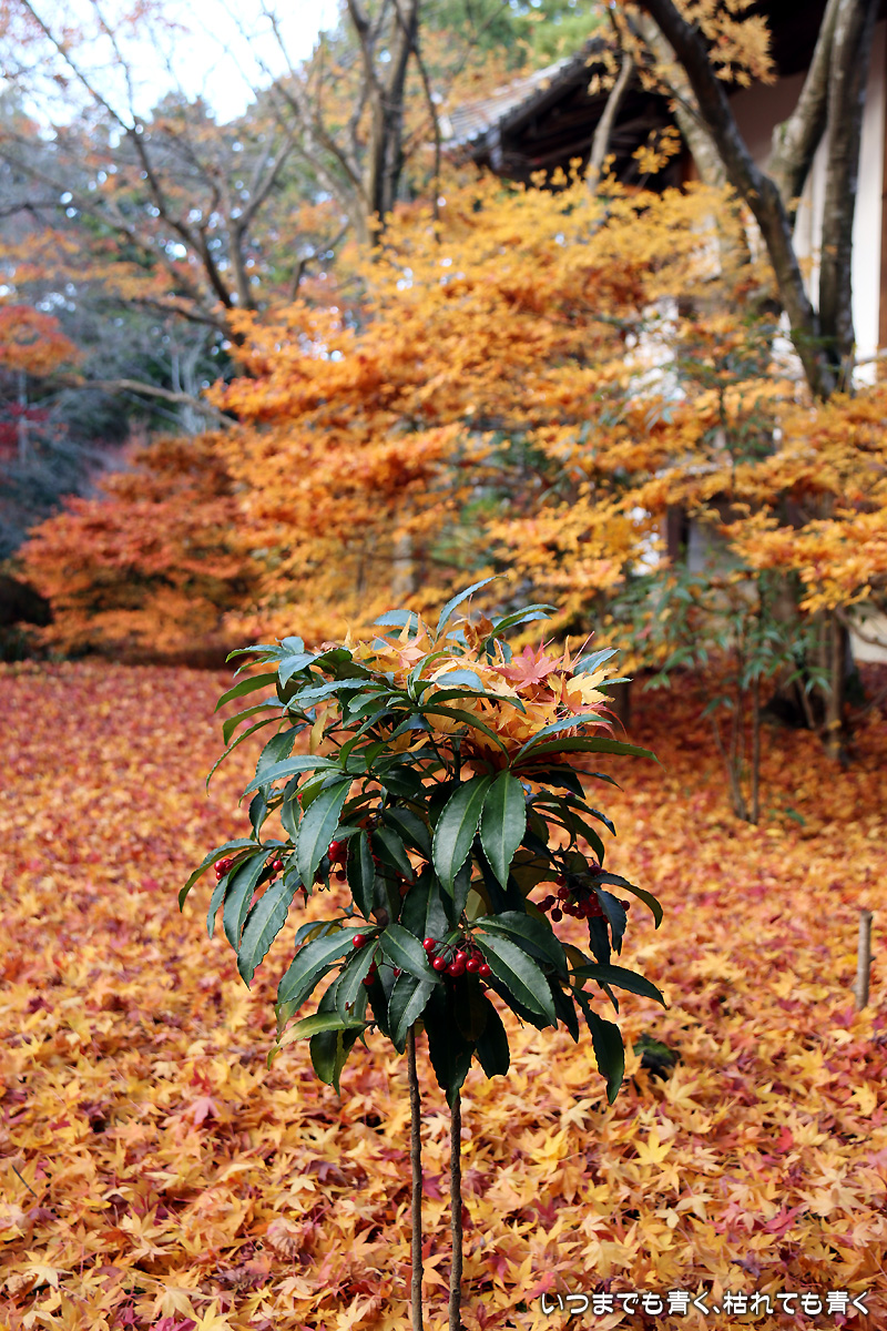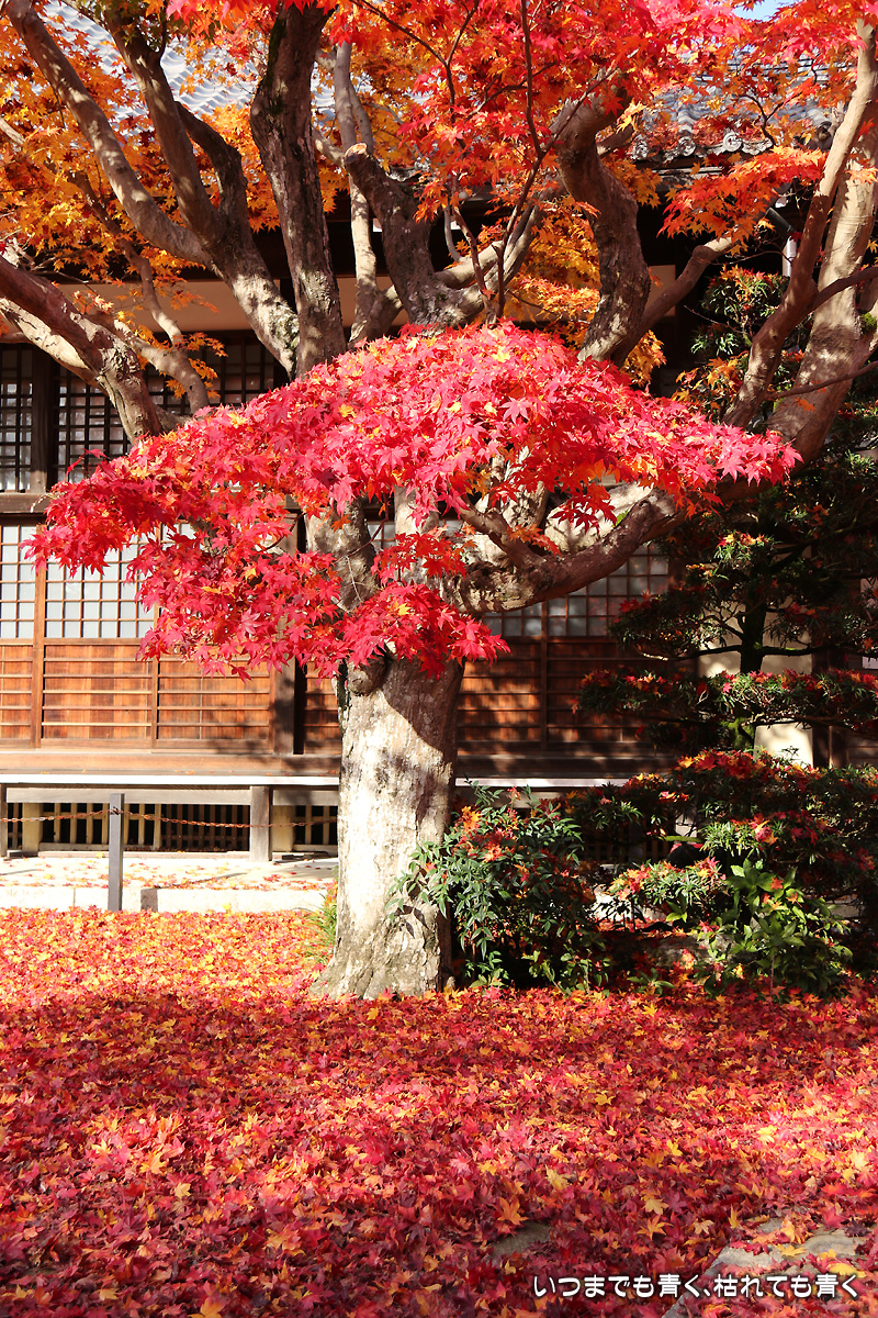 岐阜羽島に行ったついでに京都に足を延ばして、枝に残った紅葉と落ち葉の紅葉が織りなす景色を楽しんできました。