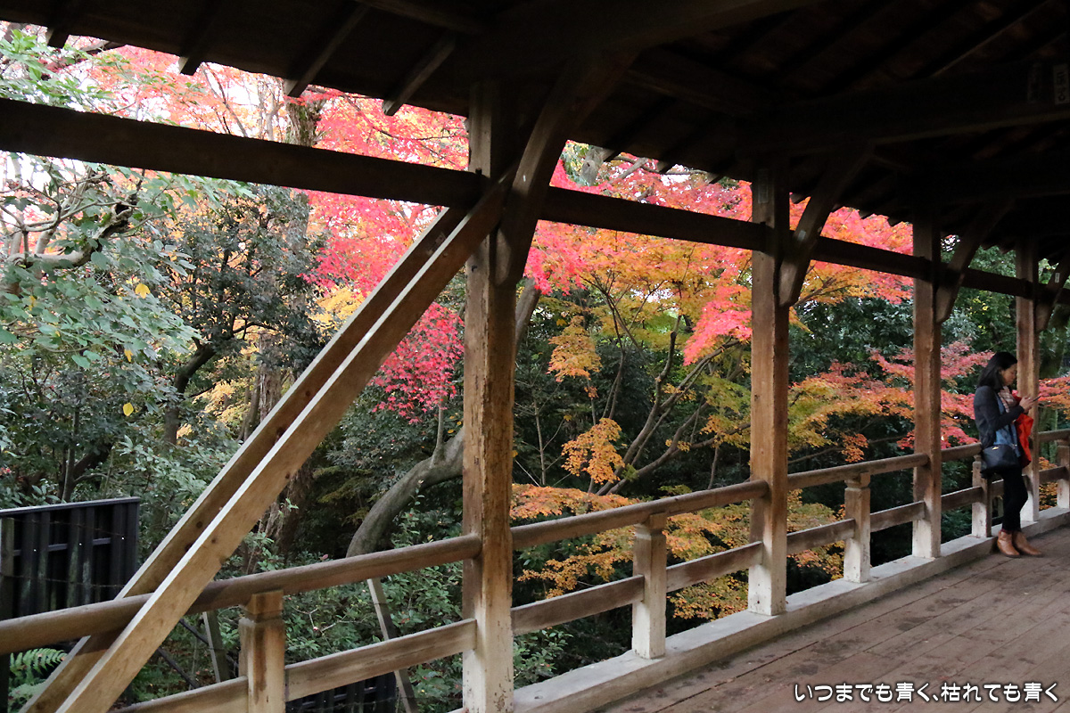時代劇のロケ地として有名な通天橋のあるお寺です。通天橋から眺める紅葉、紅葉の中にたたずむ通天橋はとても絵になります。今回は拝観時間を過ぎてしまったので、臥雲橋から眺めるのみでした。