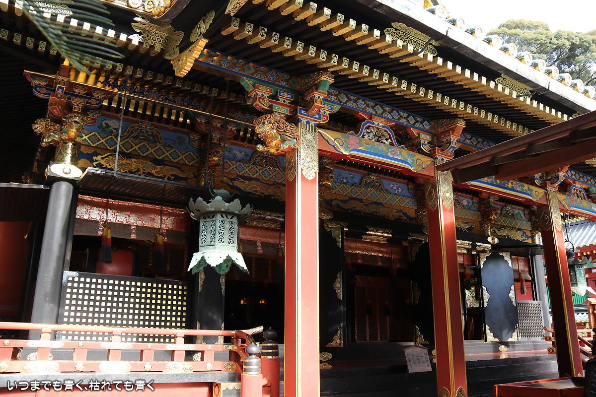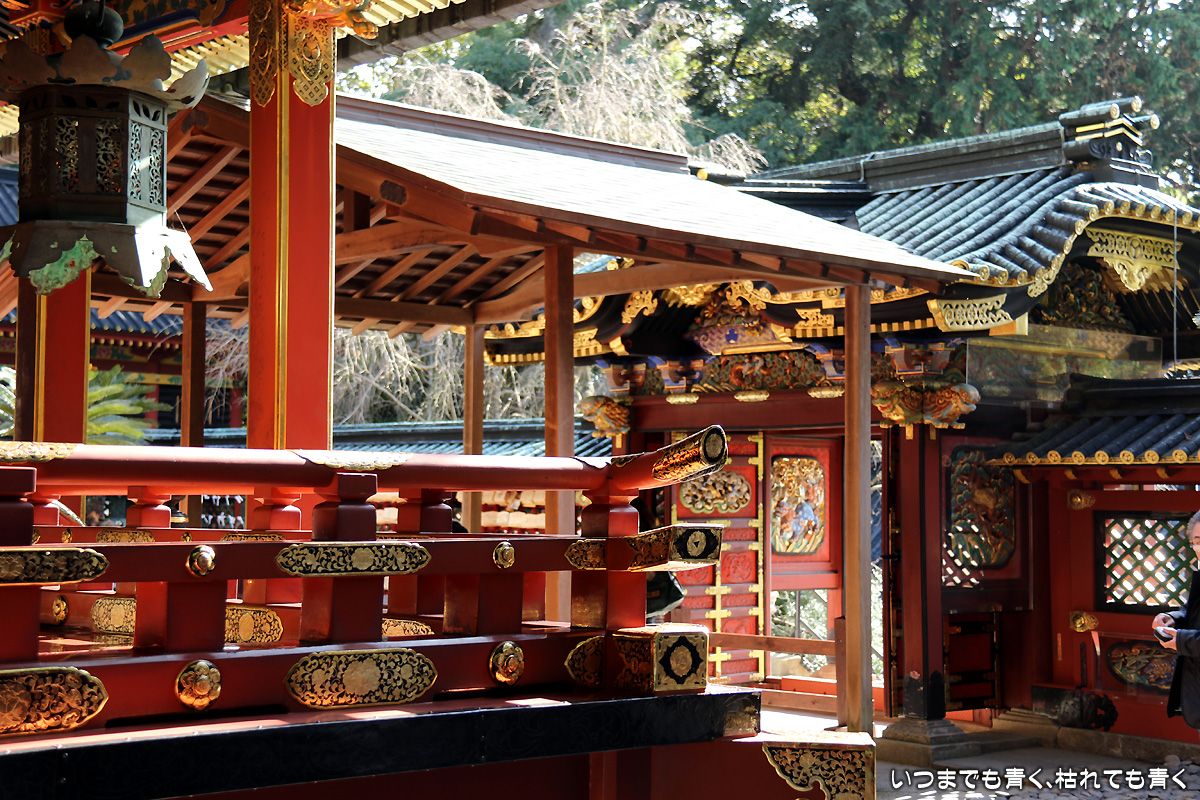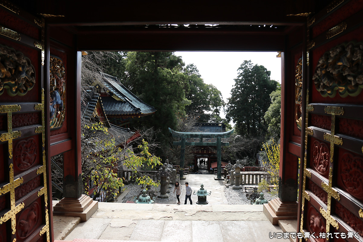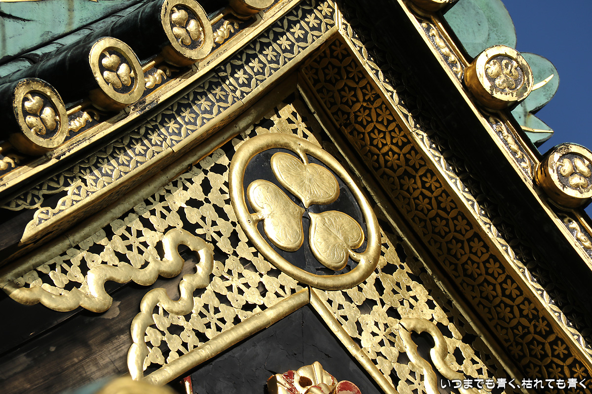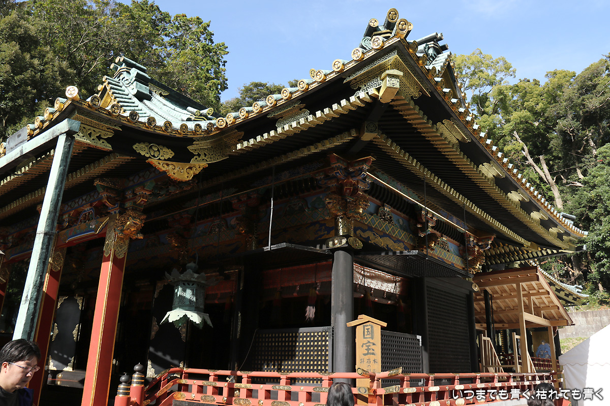 日曜日に日本平に行ったもうひとつの目的は、久能山東照宮に行くこと。久能山東照宮は、徳川秀忠が家康を祀るために造営したもので、各地の東照宮の始まりとなったところです。金の装飾や極彩色の彫刻がほどこされていて、とてもきらびやかです。