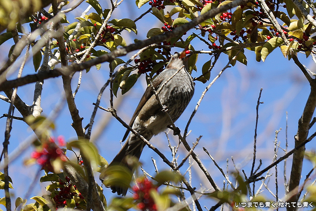 緑化センターの野鳥 ぶらりひとり旅 2015年1月25日(日) 23:59 昨日、愛知県緑化センターで木を撮っていた時に見つけた野鳥です。 野鳥を撮るつもりはなかったので、三脚なし手持ちでの思いつきかんたんスナップ撮影です。 200mm(APS-Cの7D MarkIIなので、フルサイズ320mm相当)レンズでの撮影で、周辺をトリミングしてレンズ焦点距離をごまかしています。