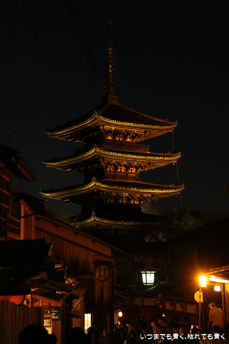 明るいうちは祇園と清水寺でのんびりと過ごし、暗くなってから清水寺から三年坂、二年坂、ねねの道、円山公園を散策。途中、八坂の塔を撮影したり、高台寺の「狐の嫁入り」に遭遇したり、高台寺の夜間特別拝観の「高台寺 小宇宙 プロジェクションマッピング」を見学したりしていたら、あっという間に9時近く。やっぱり日帰りでは、夜の京都を楽しむには無理がありますね。