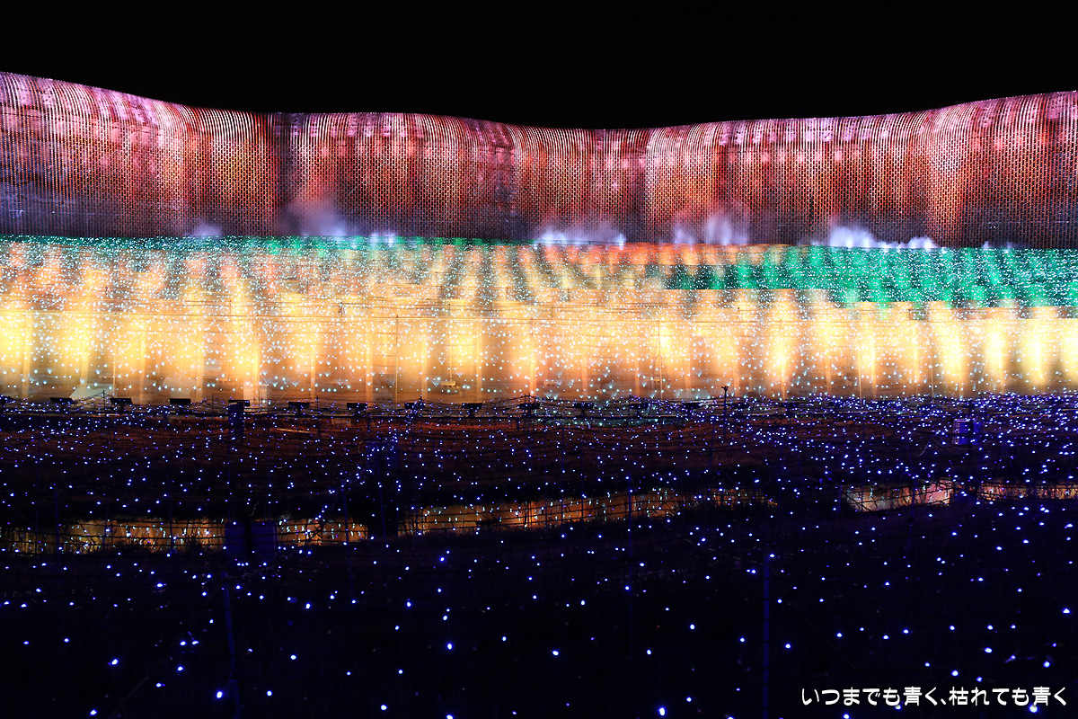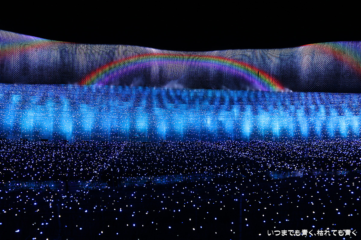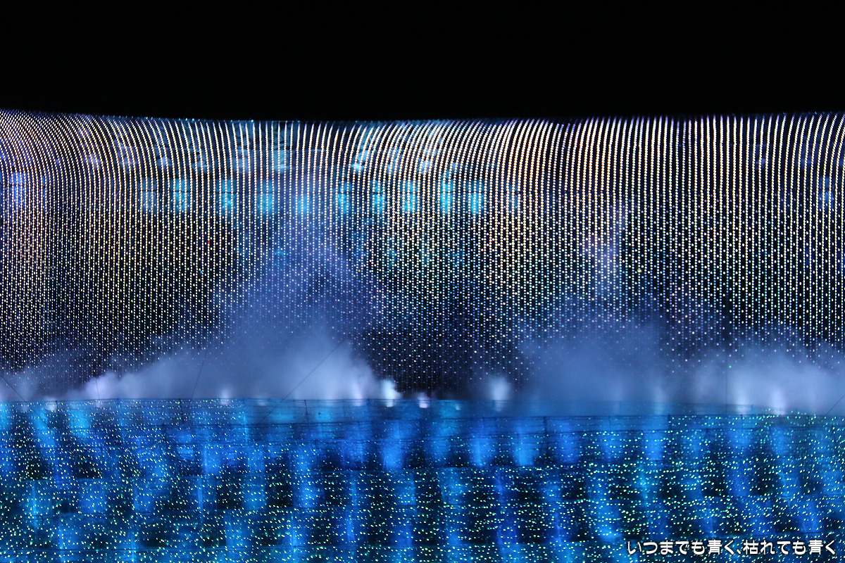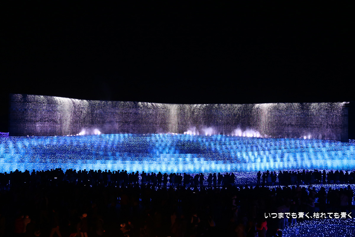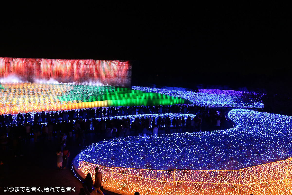 あじさい・しょうぶ園で毎年11月から3月までおこなわれるウインターイルミネーションは、いつも見応えがあって圧倒されます。今年のテーマは「ナイアガラの滝」。横幅が120mもあり、間近では広角レンズでも全体をおさめることは不可能です。昨年の11月から公開されていますが、新年からは「希望の虹」と「オーロラ」が追加されたようです。途中でスーパーマンが滝を横切って行くのも見逃してはいけません。ビデオでも撮りましたので、できればご紹介したいと思います。