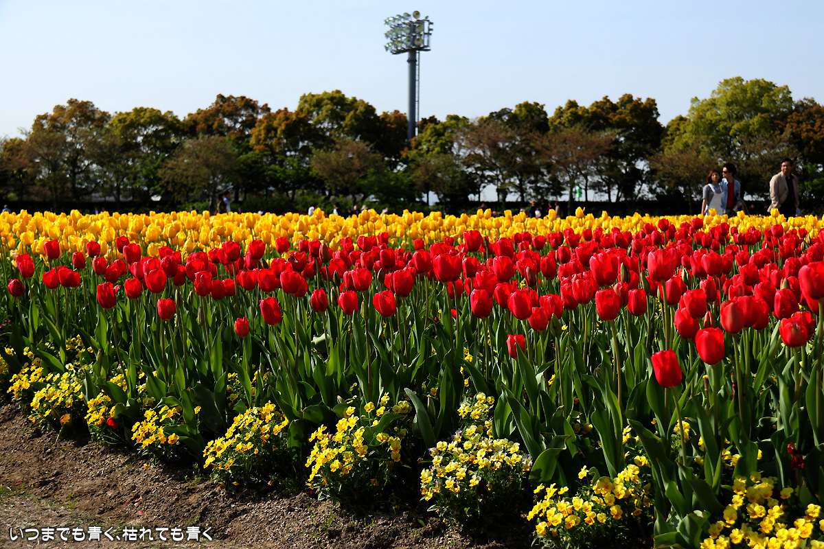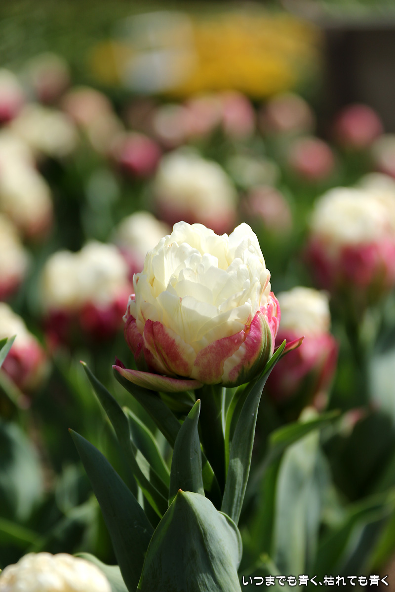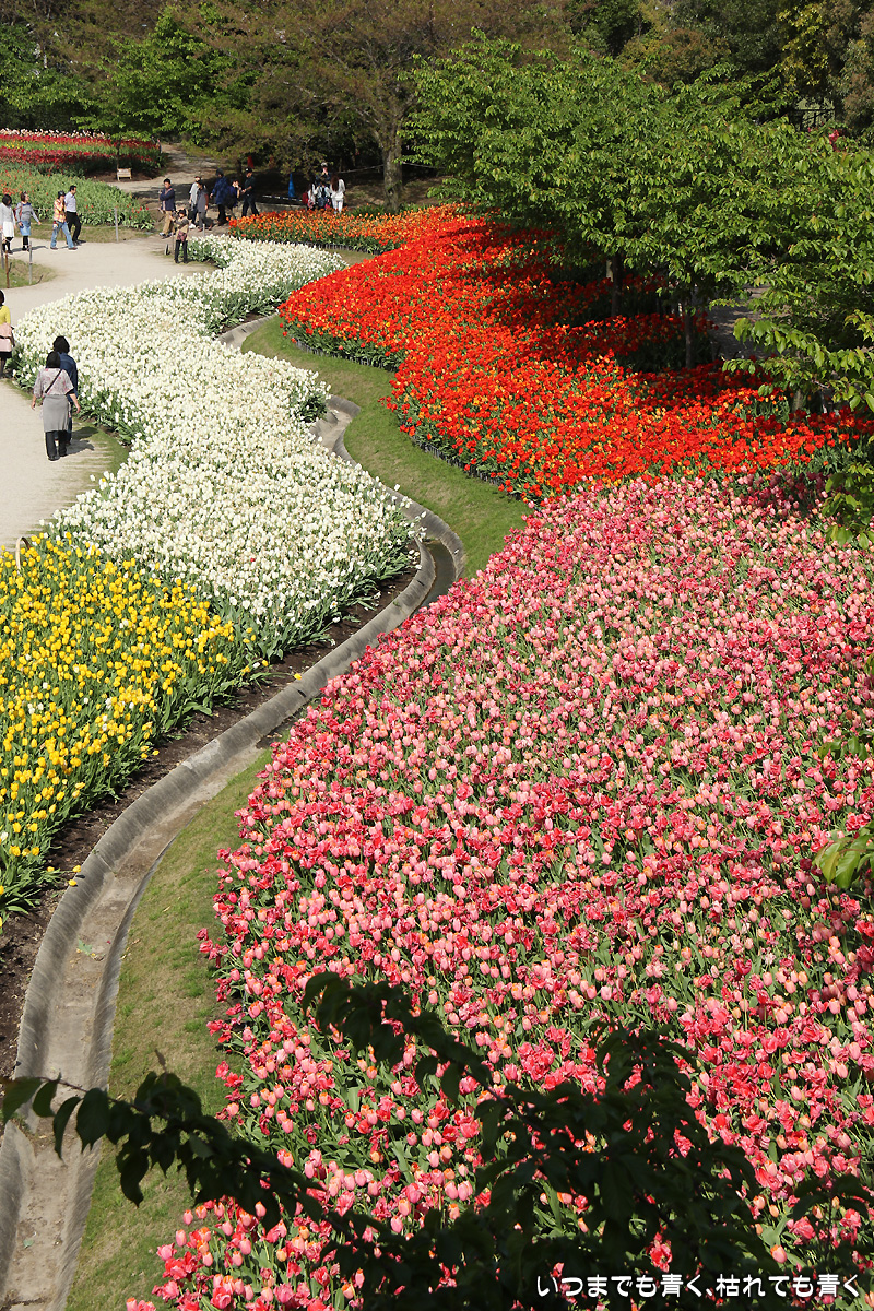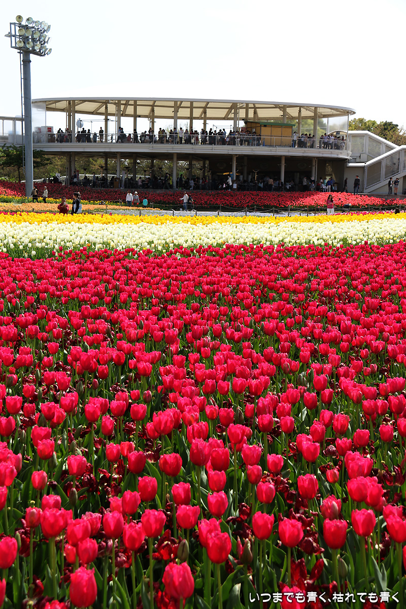 今年は土日の天候があまり良くなくて、なばなの里のチューリップまつりは行くのをあきらめていたのですが、昨夜の地元ニュースで今が見ごろだと言っていたので、穏やかな日和にも誘われて今日ひとりで行ってきました。確かに見ごろのチューリップも多かったですが、すでに花を落としているものや花びらが弱っているものも多くて、実際は見頃の時期はもう過ぎているなぁという感じでした。