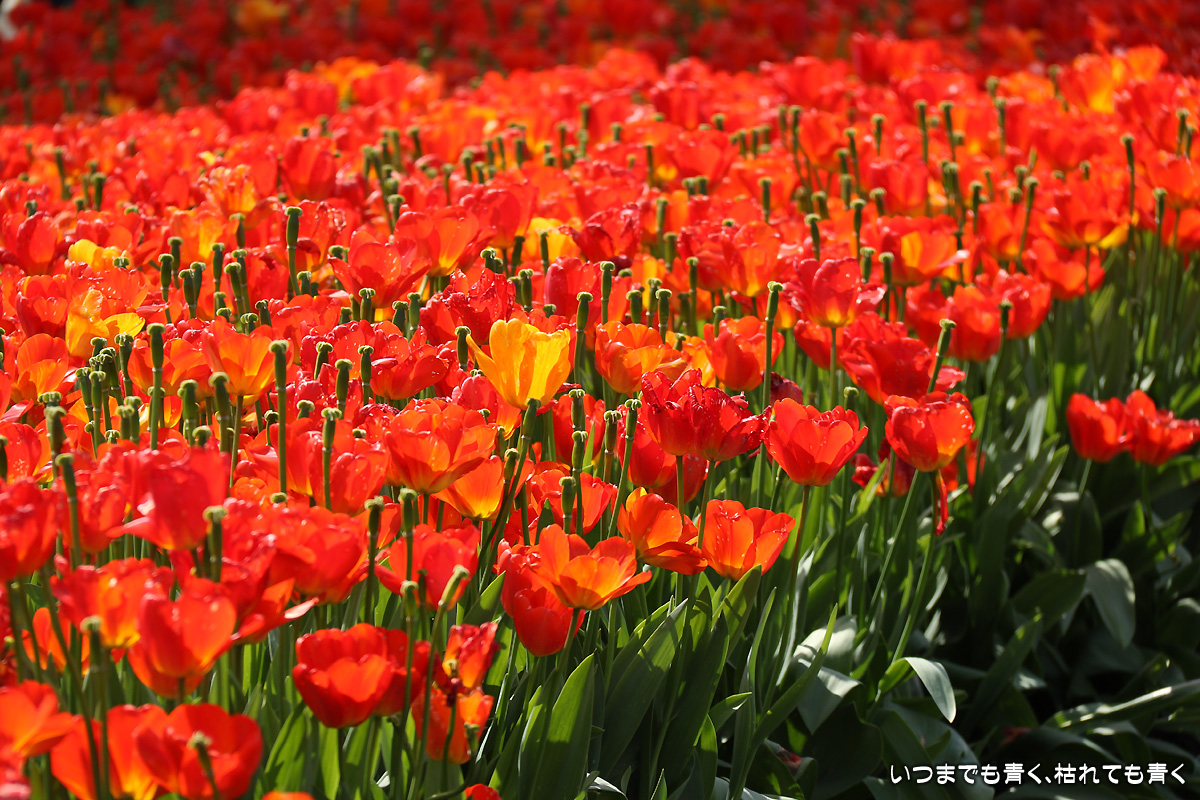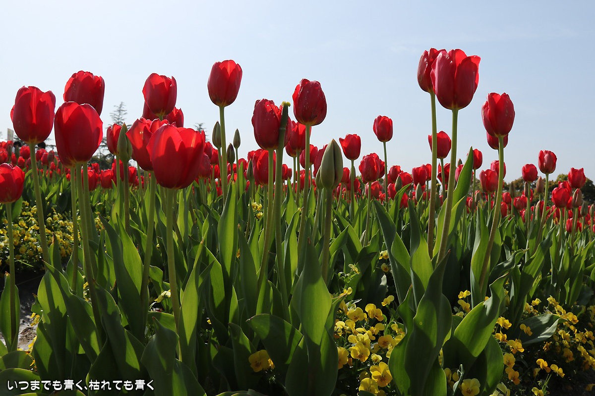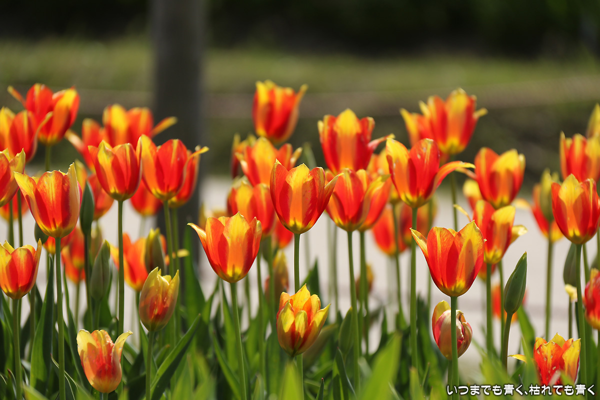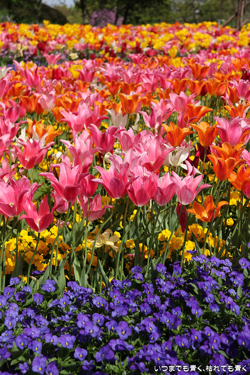 今年は土日の天候があまり良くなくて、なばなの里のチューリップまつりは行くのをあきらめていたのですが、昨夜の地元ニュースで今が見ごろだと言っていたので、穏やかな日和にも誘われて今日ひとりで行ってきました。確かに見ごろのチューリップも多かったですが、すでに花を落としているものや花びらが弱っているものも多くて、実際は見頃の時期はもう過ぎているなぁという感じでした。