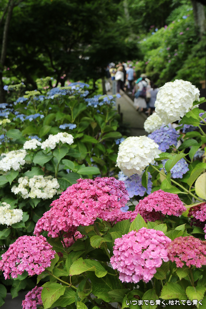 長谷寺は、例年は朝の9時半頃に着けば、あじさい路は待ち時間無しで見ることができたのですが、今年は9時20分頃に着いたのにすでに1時間半待ちでした。本当に今年は人が多いです。