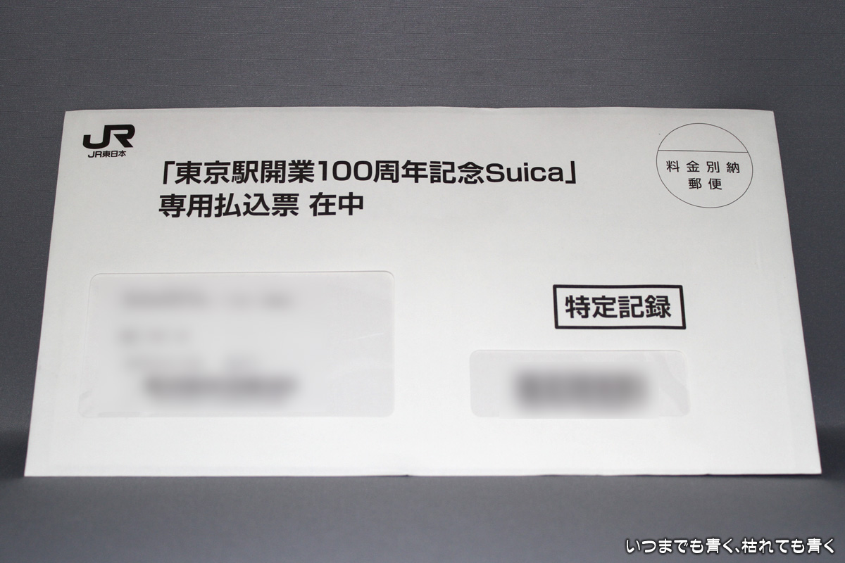 東京駅開業100周年記念Suica 日記/出来事 2015年6月27日(土) 22:09 2月に申し込んだ「東京駅開業100周年記念Suica」の発送順番がようやく回ってきました。 代金を7月14日までに支払えば、7月末には送られてくるみたいです。 ヴェルファイアもこれも、長く待たされたものがようやく届きます。(^-^)