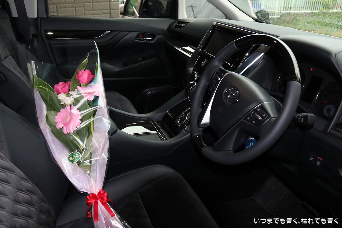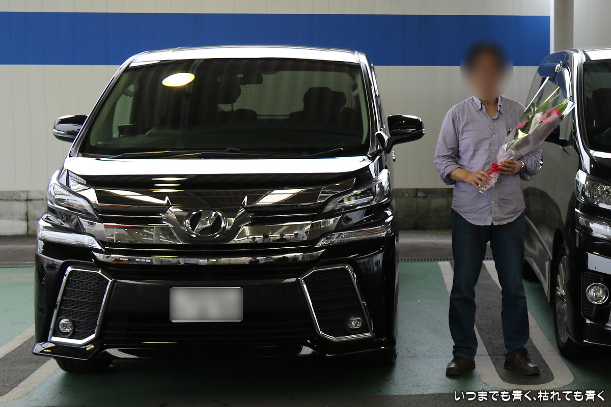 ヴェルファイアの納車日 クルマの話 2015年7月4日(土) 21:22 今日は、ヴェルファイアの納車日でした。 剥いでほしくない保護フィルムを剥がしてしまったり、レーダー探知機の電源が断線できていなかったり、ネットで購入したフロアマットが一部欠品だったりと、いろいろとトラブルもありましたが、全体的には楽しい納車式でした。 同じ販売店でずっと購入してきましたが、花束をもらっての納車式は初めてでしたので、とても新鮮でした。 新しいヴェルファイア、とてもいいですよ!(^-^)