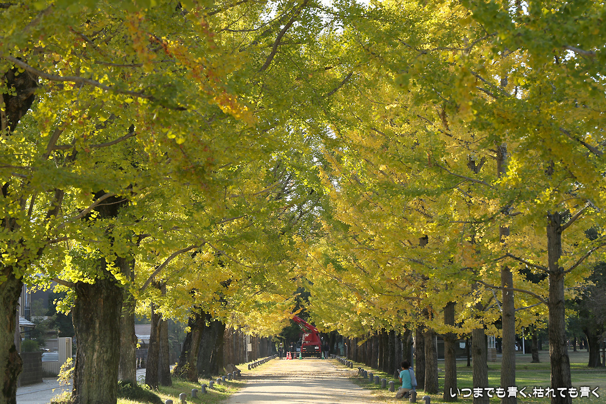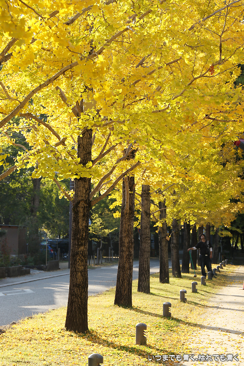 染まりつつある冬ソナストリート ぶらりひとり旅 2015年11月6日(金) 23:59 モネの池、高賀神社と同じ岐阜県ということで、帰りに岐阜県各務原市の冬ソナストリート(学びの森プロムナード)を見てきました。黄色の天井と黄色の絨毯まで、もう少しです。