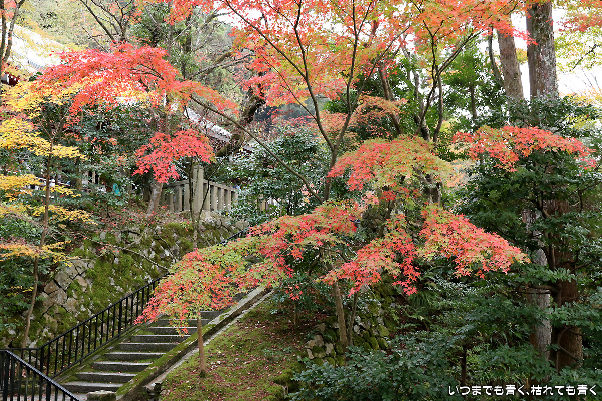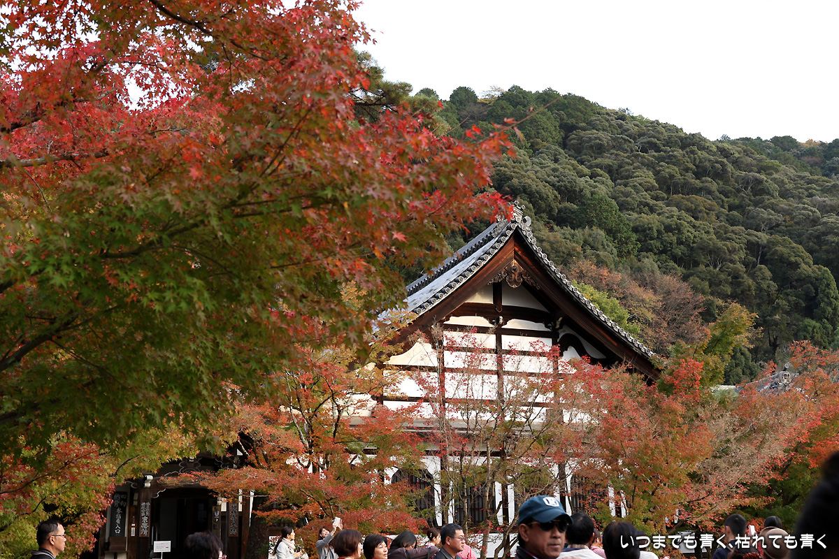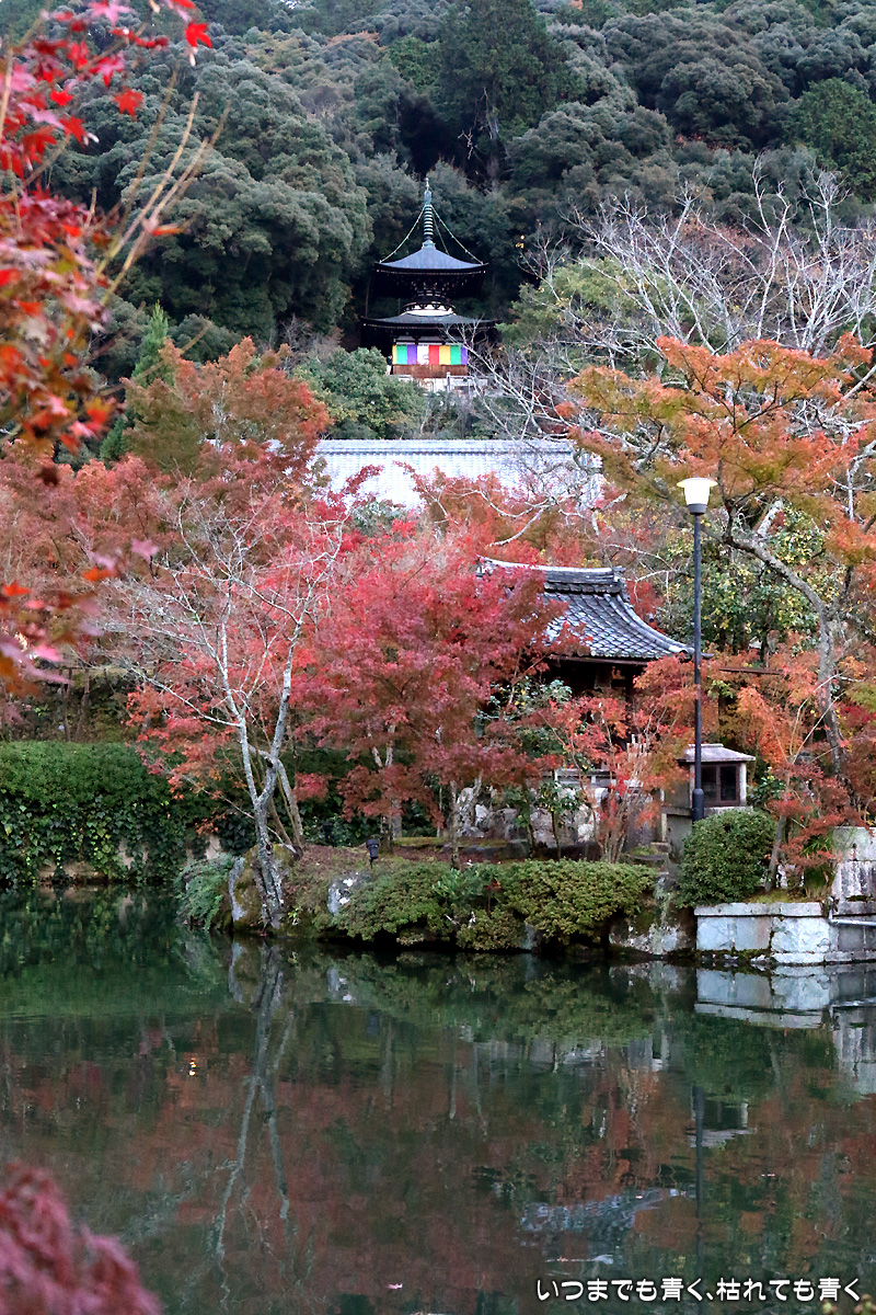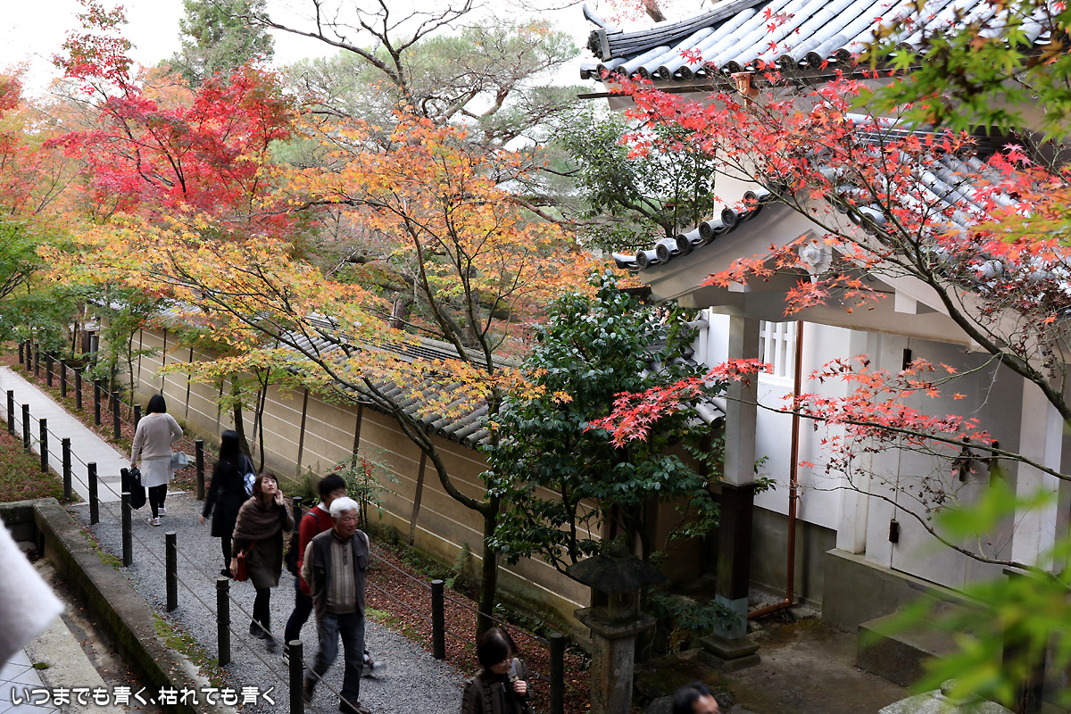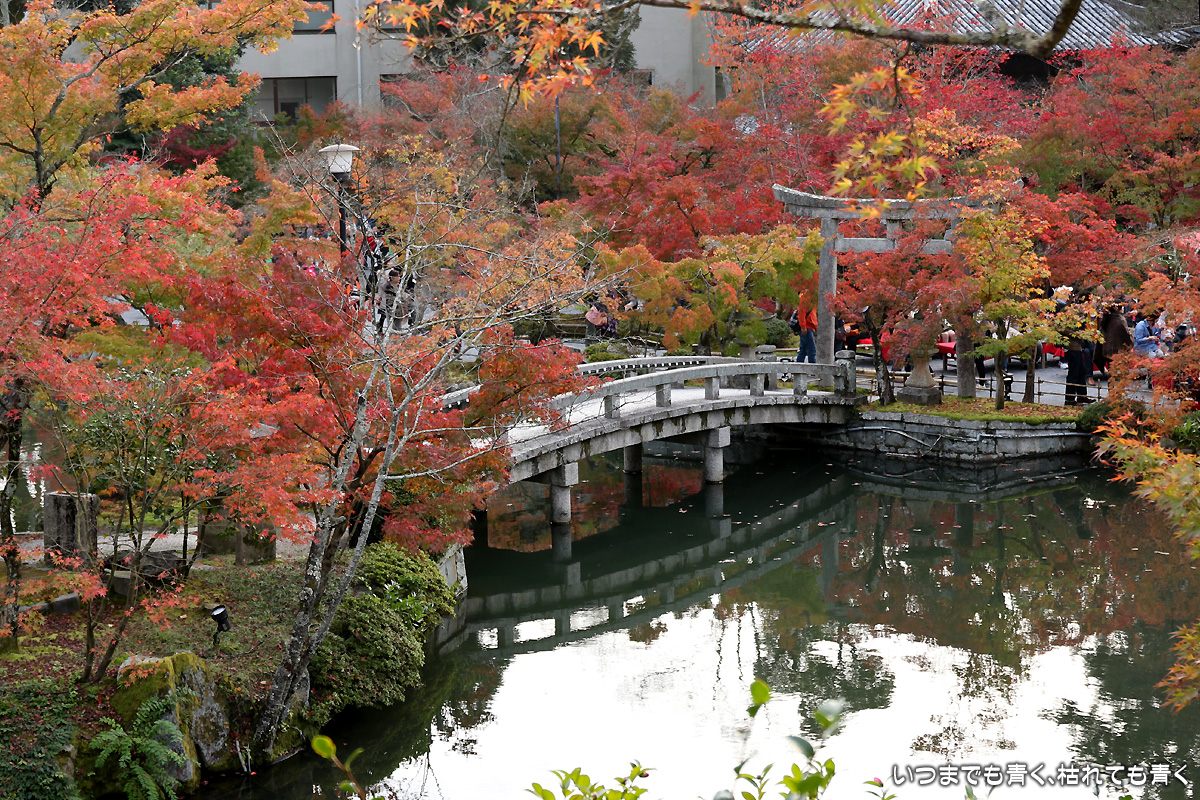 永観堂禅林寺の紅葉。昼の拝観時間の受付ギリギリに入ったので、拝観は閉門までの1時間しかありませんでした。その時間の中で、釈迦堂、御影堂、本堂等を見て、ご朱印をいただき、紅葉の写真撮影をするわけですから、慌ただしく動き回りじっくりと楽しむという感じではありませんでした。写真も夕刻で撮影条件も厳しくなってとりあえずシャッターを押しておこうという写真が多かったです。そのぶん、夜間拝観(ライトアップ)は、じっくりと時間をかけて楽しみましたが、その写真はまたあとで。