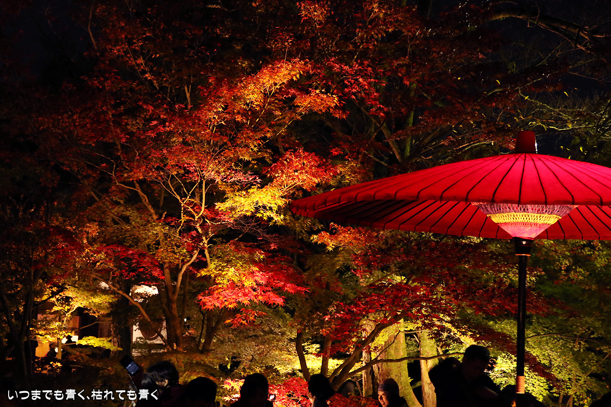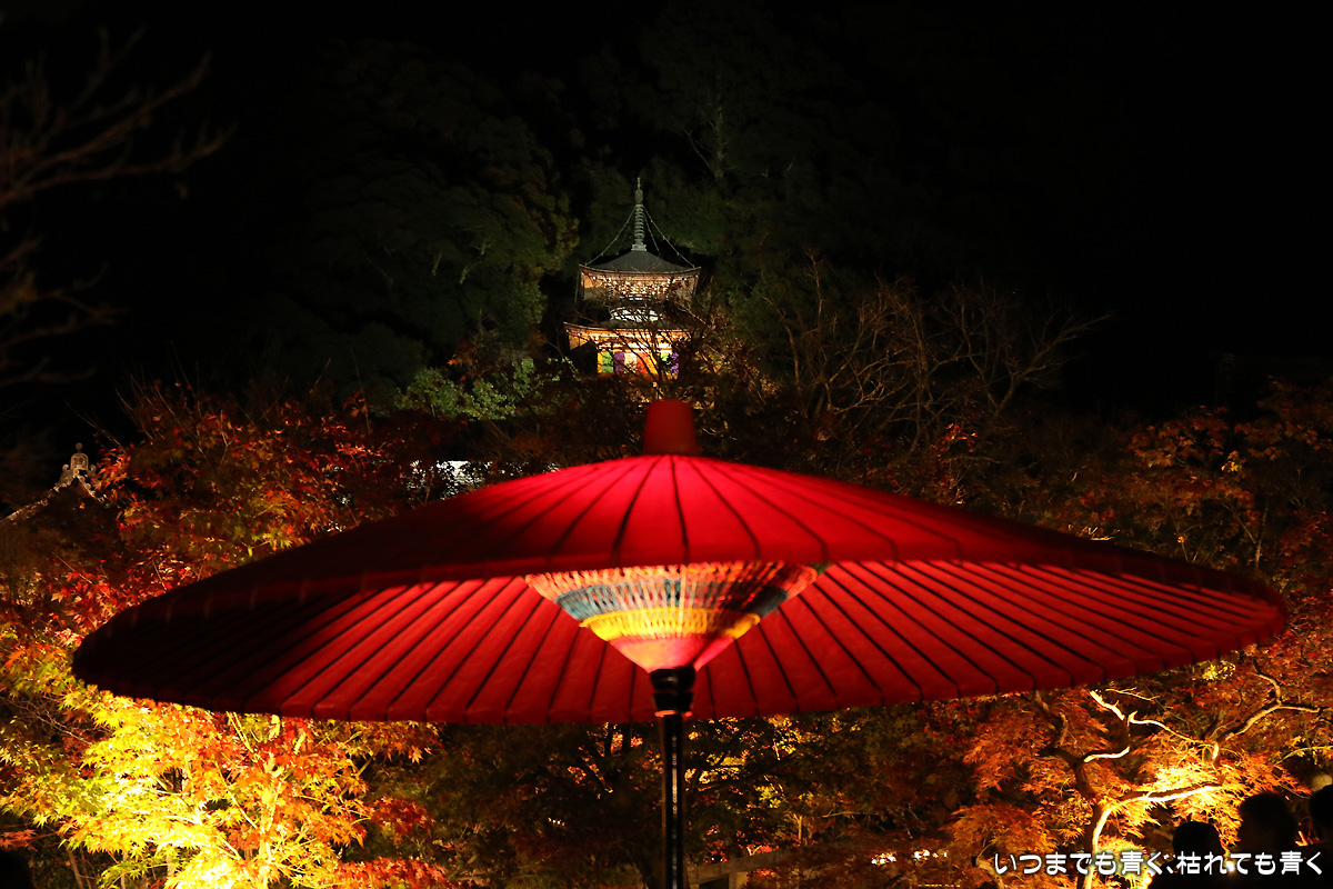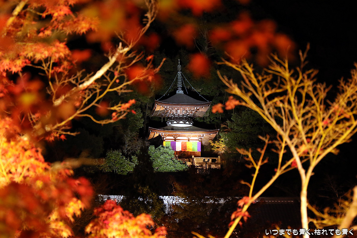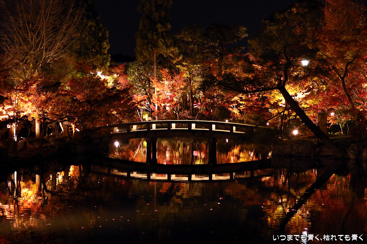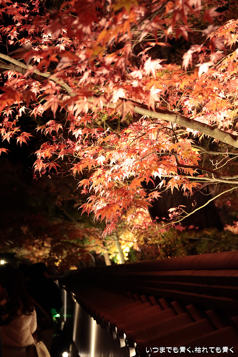 永観堂の紅葉ライトアップ ぶらりひとり旅 2015年11月21日(土) 23:59 永観堂禅林寺の紅葉ライトアップ。 昼間よりも荘厳な感じがします。庭園内にある「みかえり茶屋」で、あったかいぜんざいとお茶をいただきながら、ライトに照らされたモミジや多宝塔を眺める時間は本当に日常と違った時間を過ごすことができました。ただ、まわりはほとんど二人連れ以上。ひとりでいるのは私くらいでしたね。(^_^;) 【このエントリは、2015年11月23日に2015年11月21日付で掲載しました。】