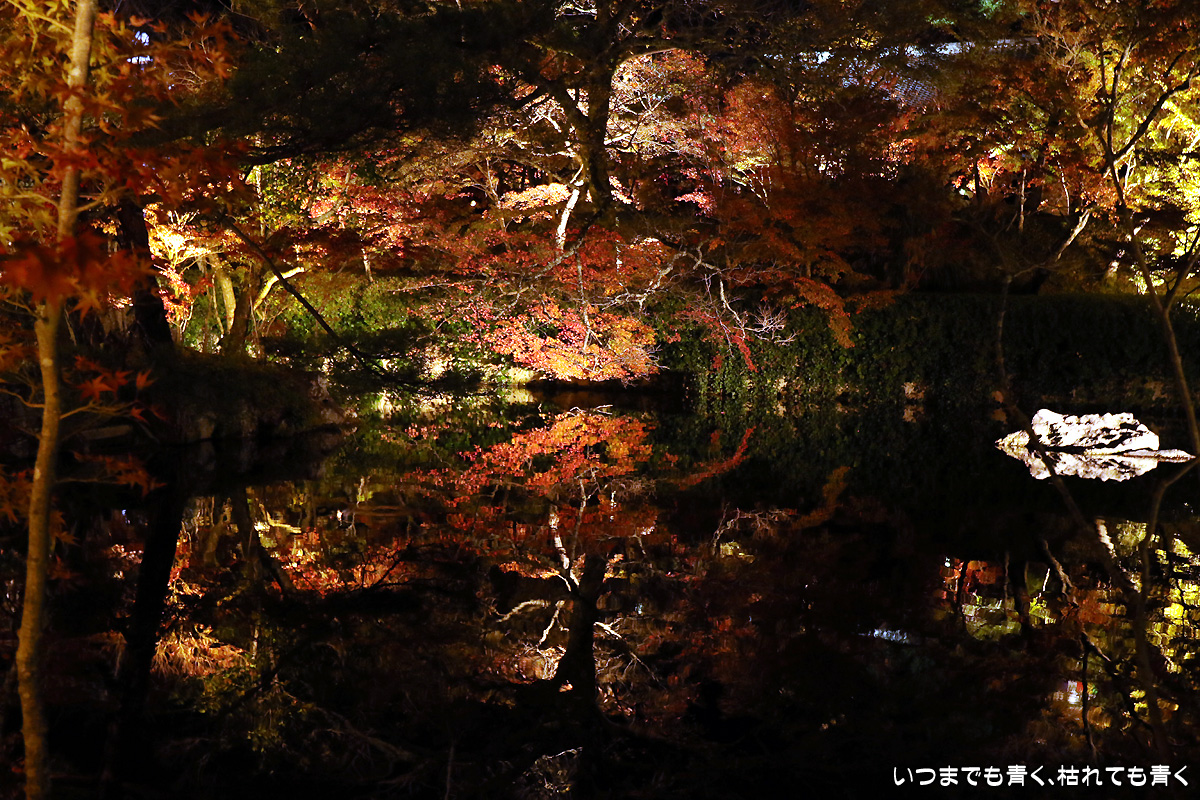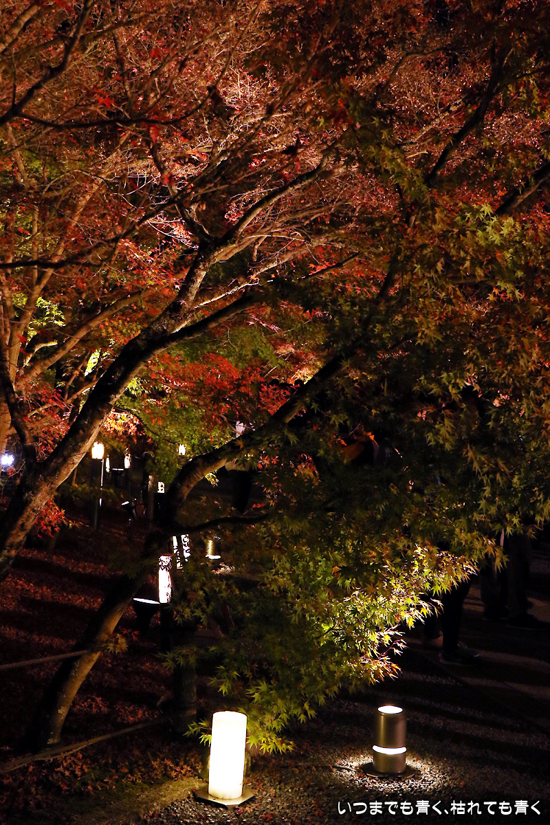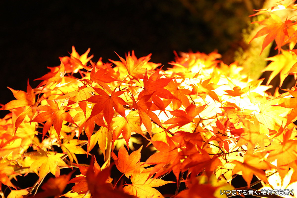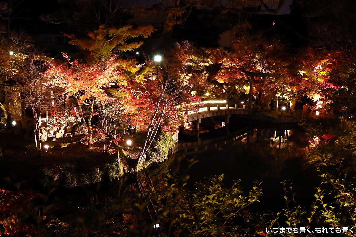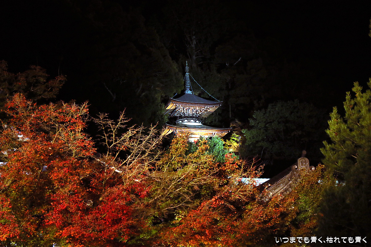 永観堂の紅葉ライトアップ ぶらりひとり旅 2015年11月21日(土) 23:59 永観堂禅林寺の紅葉ライトアップ。 昼間よりも荘厳な感じがします。庭園内にある「みかえり茶屋」で、あったかいぜんざいとお茶をいただきながら、ライトに照らされたモミジや多宝塔を眺める時間は本当に日常と違った時間を過ごすことができました。ただ、まわりはほとんど二人連れ以上。ひとりでいるのは私くらいでしたね。(^_^;) 【このエントリは、2015年11月23日に2015年11月21日付で掲載しました。】