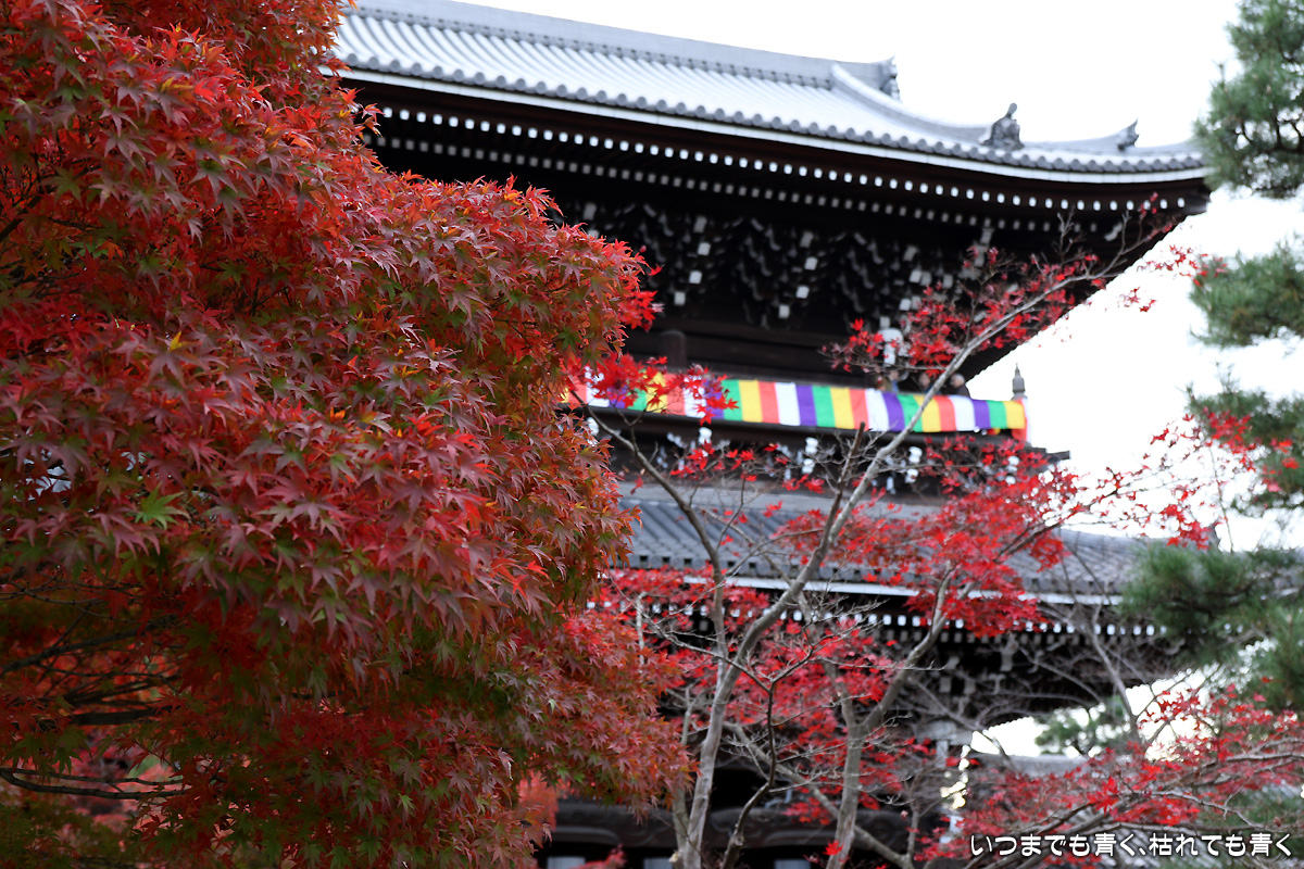 金戒光明寺の紅葉はちょうど見ごろで、山門や庭園との調和がとても美しかったです。写真で少しでもその美しさをお伝えできていればよいのですが。金戒光明寺の近くの真如堂の紅葉も見たかったのですが、今回は金戒光明寺で時間を費やしすぎて真如堂には行くことができなかったのが残念でした。