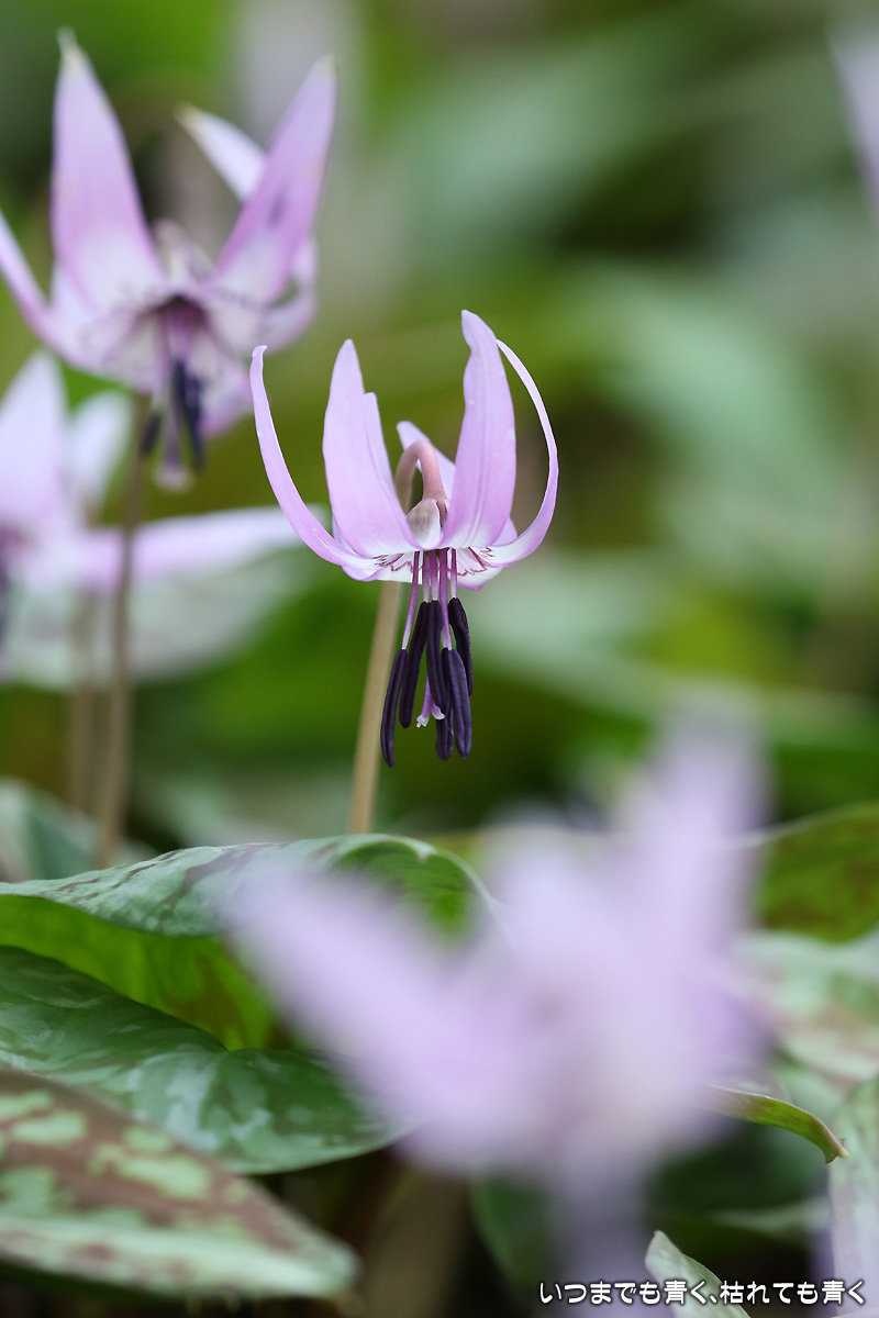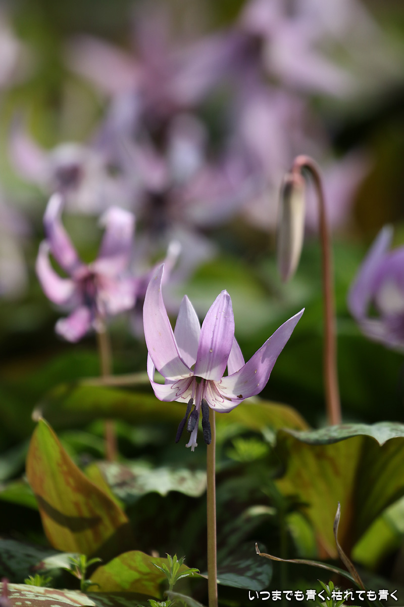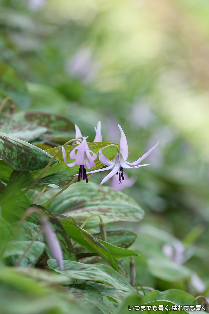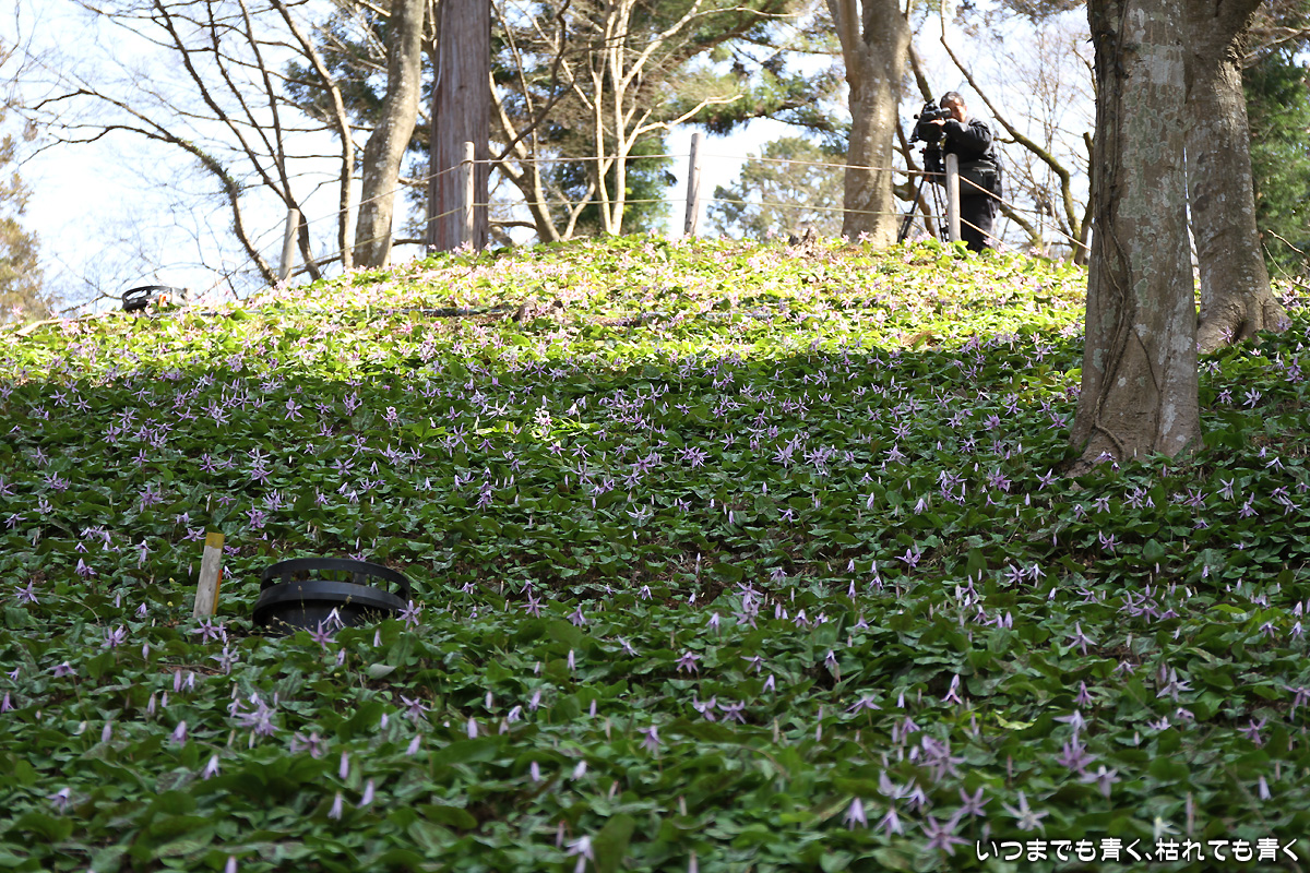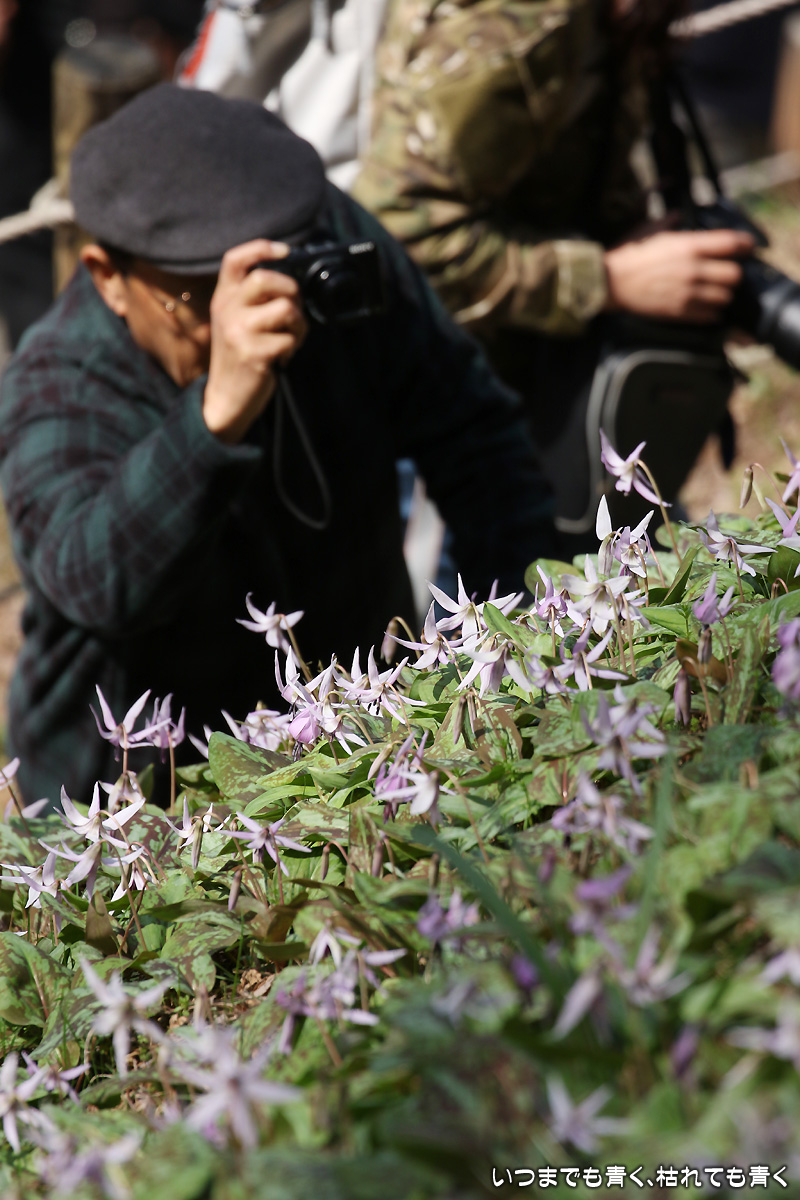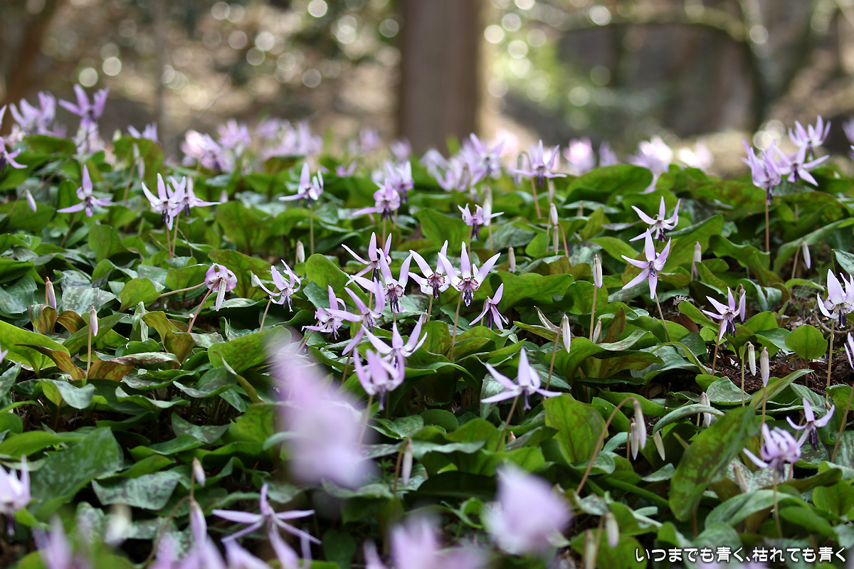 カタクリの花は毎年撮影していますが、なかなか絵になってくれない難しい花です。午前中に行くと花びらを閉じてしまっていますし、ひとつひとつの花を目立たさせるのか、群生をうまく表現するのか、迷ってしまいます。構図だけは単調にならぬように心がけましたが、並べてみると同じような構図が多くなってしまいました。