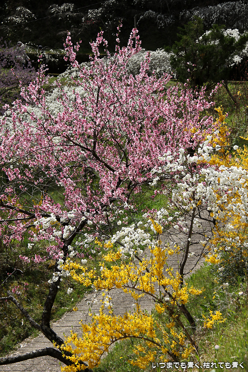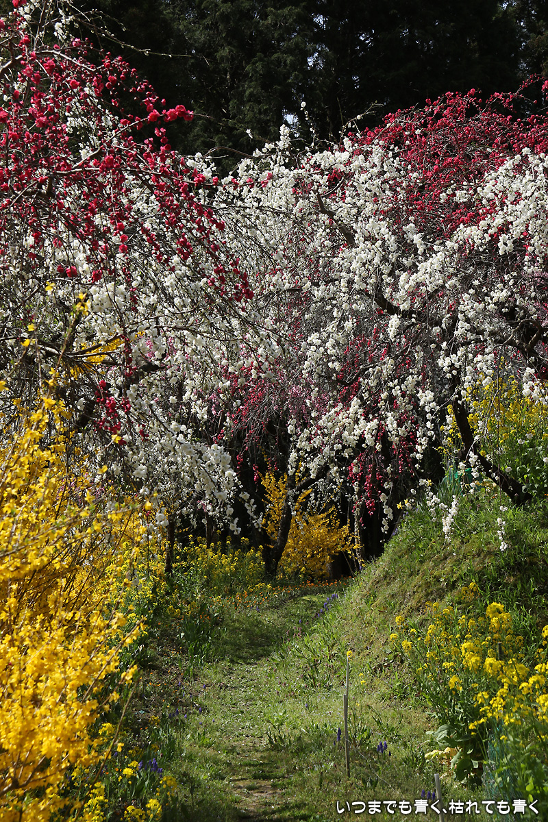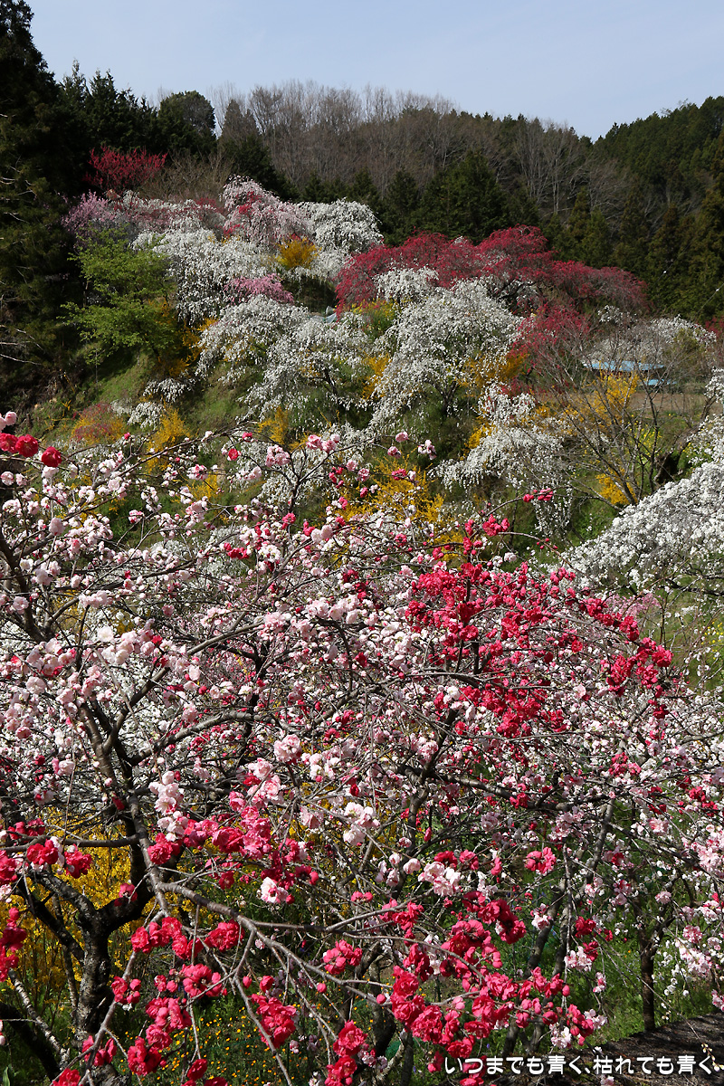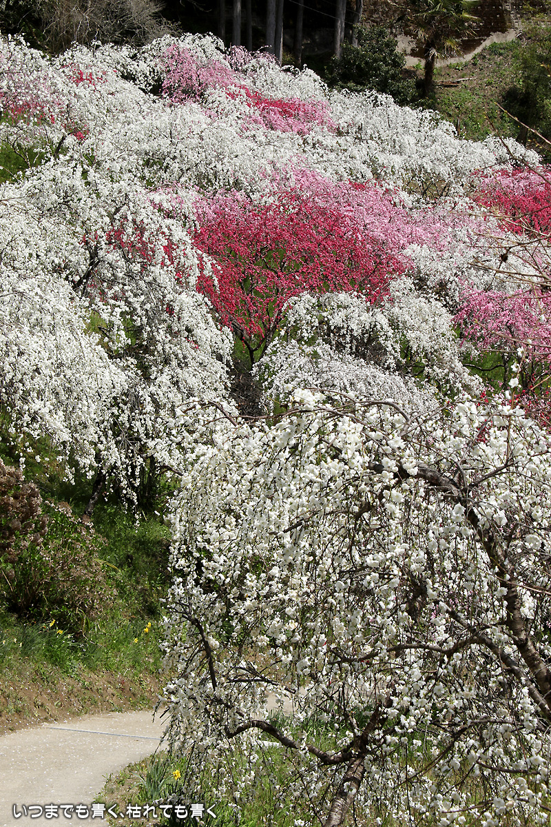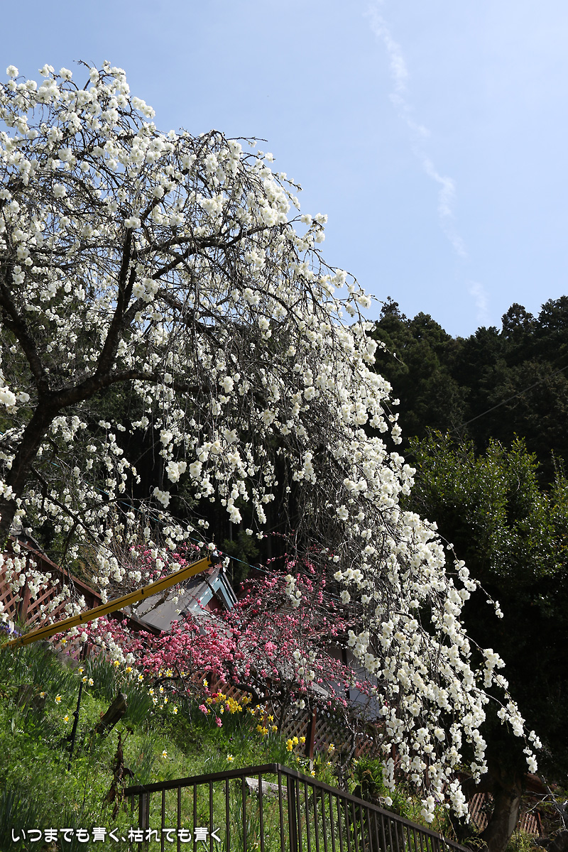 上中のしだれ桃・2016 ぶらりひとり旅 2016年4月9日(土) 20:17 昨年は時期を逸して見逃してしまった上中のしだれ桃。同じ市内にもかかわらずクルマで一時間くらいかかるところなので、今年は天気のいい日に絶対に見ようと思って、昨夜深夜3時までカラオケをしていたにもかかわらず、朝一番でクルマを走らせて見てきました。 今年は、開花の遅れていた山桜との珍しい共演を見ることができましたし、チューリップやスイセンなども咲き誇り、鮮やかな色彩との調和も素敵でした。のんびりと長閑な山間の道を、美しい花を楽しみながら歩く時間は、私にとって至福のひとときです。