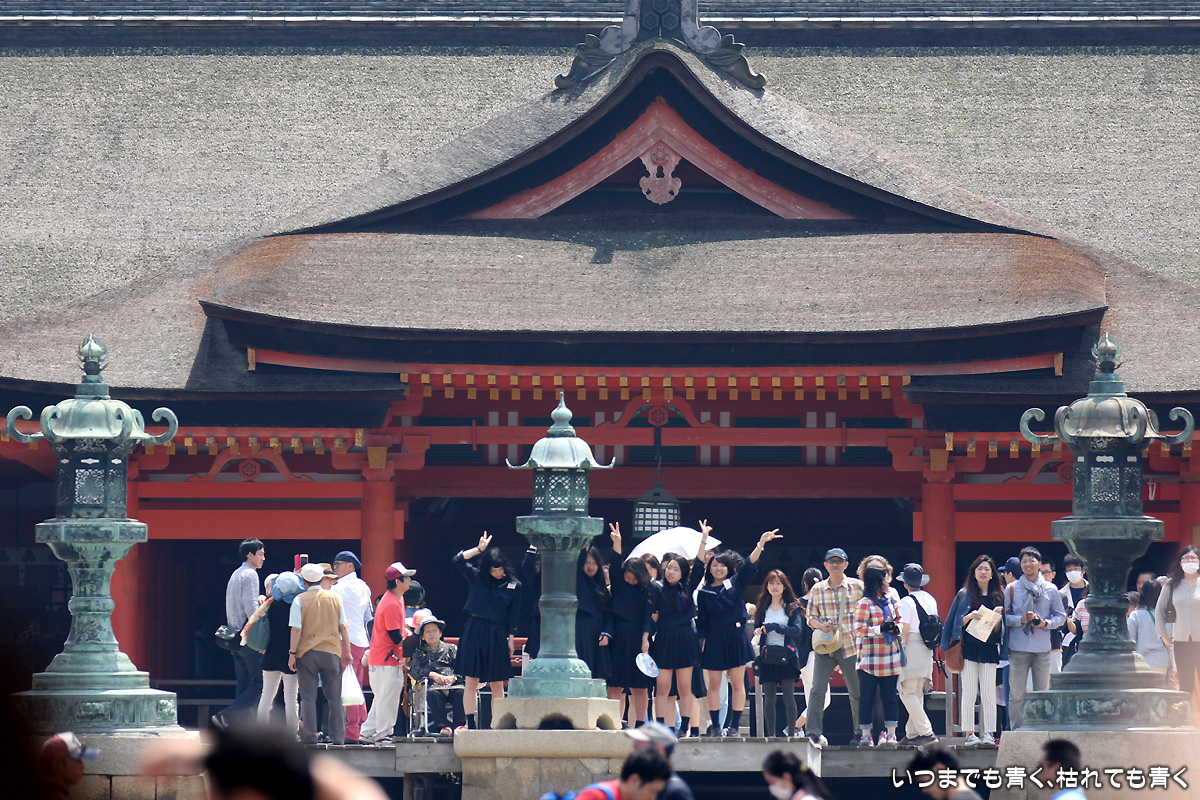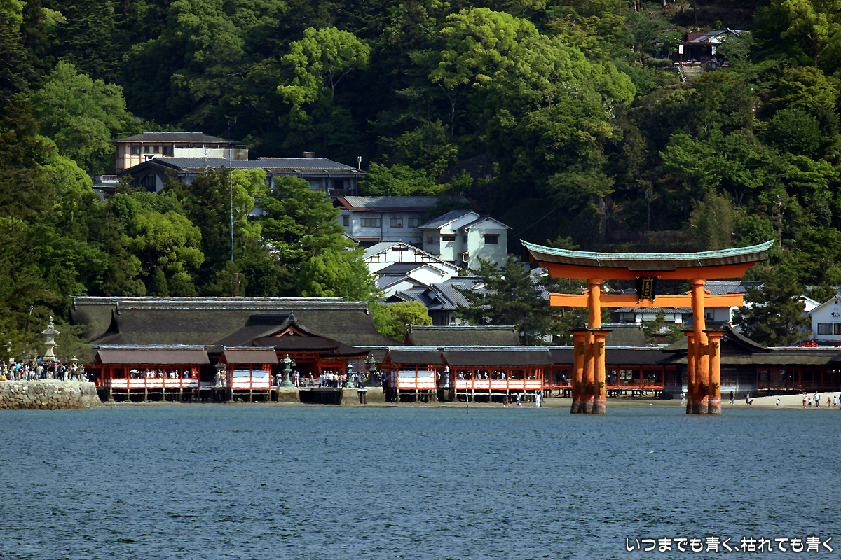 4年ぶりに訪れた宮島・厳島神社。4年前は大鳥居が暴風で損傷を受けて修理中で、その姿を見ることができませんでしたので、海に立つ大鳥居を見るのは今回が初めてとなります。干潮の時刻ともうまくあって、大鳥居の真下まで行くことができて、いろんな方向からの大鳥居や本殿を撮影することができました。