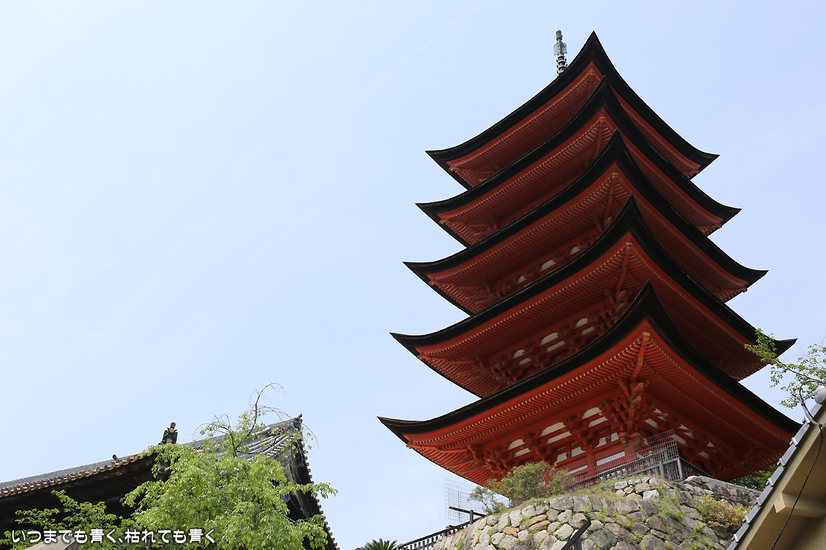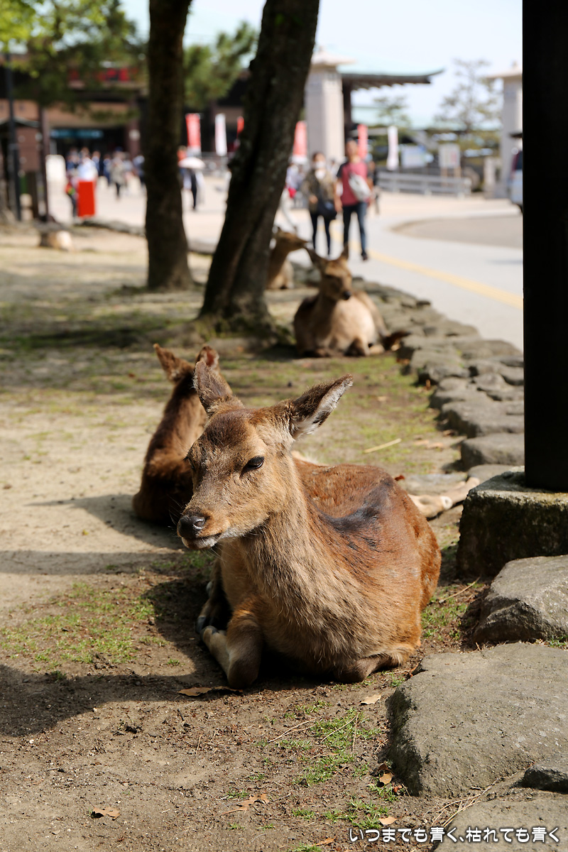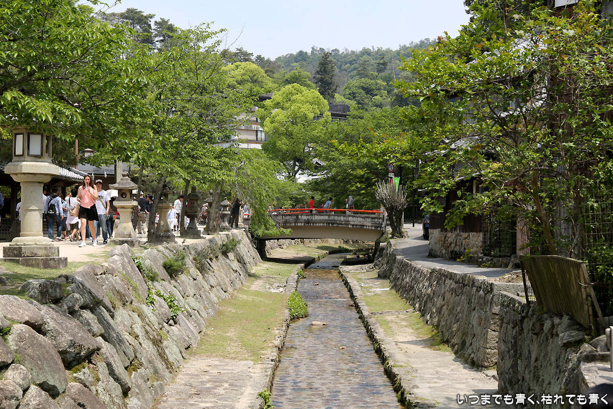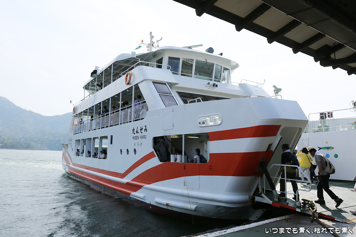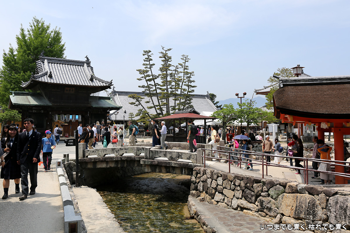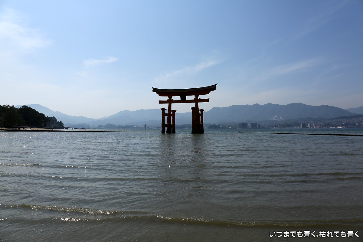 二日目は、朝から宮島の厳島神社へ。ホテルから宮島口に向かい、フェリー乗り場近くの駐車場にクルマを止めてフェリーで宮島に向かいます。フェリーは最初「宮島松大汽船」のチケットを買ってしまいましたが、「JR西日本宮島フェリー」のほうが好みなので変更。4年前にひとりで来た時は、暴風で損傷を受けて修復中で見ることができなかった大鳥居、今回はちゃんと海に立つ大鳥居の雄姿を見ることができました。事前に調べて来たわけではないのですが、干潮の時刻ともうまくあって、大鳥居の真下まで行くことができ、いろんな方向からの大鳥居や本殿を撮影することができたのはラッキーでした。奥さんが膝が悪いので、高台の豊国神社や大聖院には行くことができず、厳島神社と大願寺だけしか楽しめませんでしたが、奥さんも娘たちも寺社よりも美味しいものやお土産選びのほうが興味あるようでしたので、そういう意味では十分宮島を楽しめたようで良かったです。